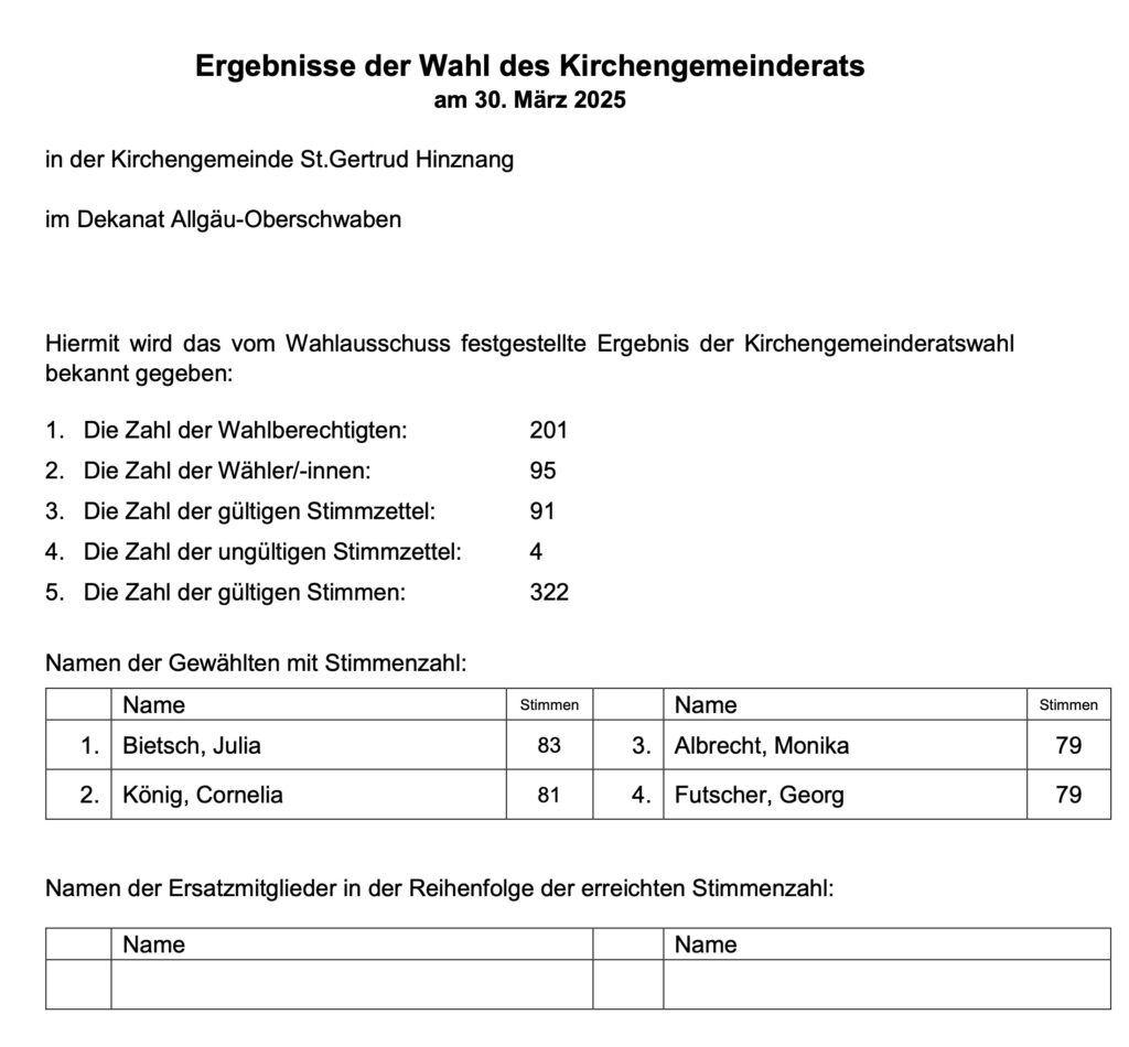 In Hinznang gingen 47,3 Prozent der 201 Wahlberechtigten zur Wahl. Das beste Ergebnis hatte Julia Bietsch.