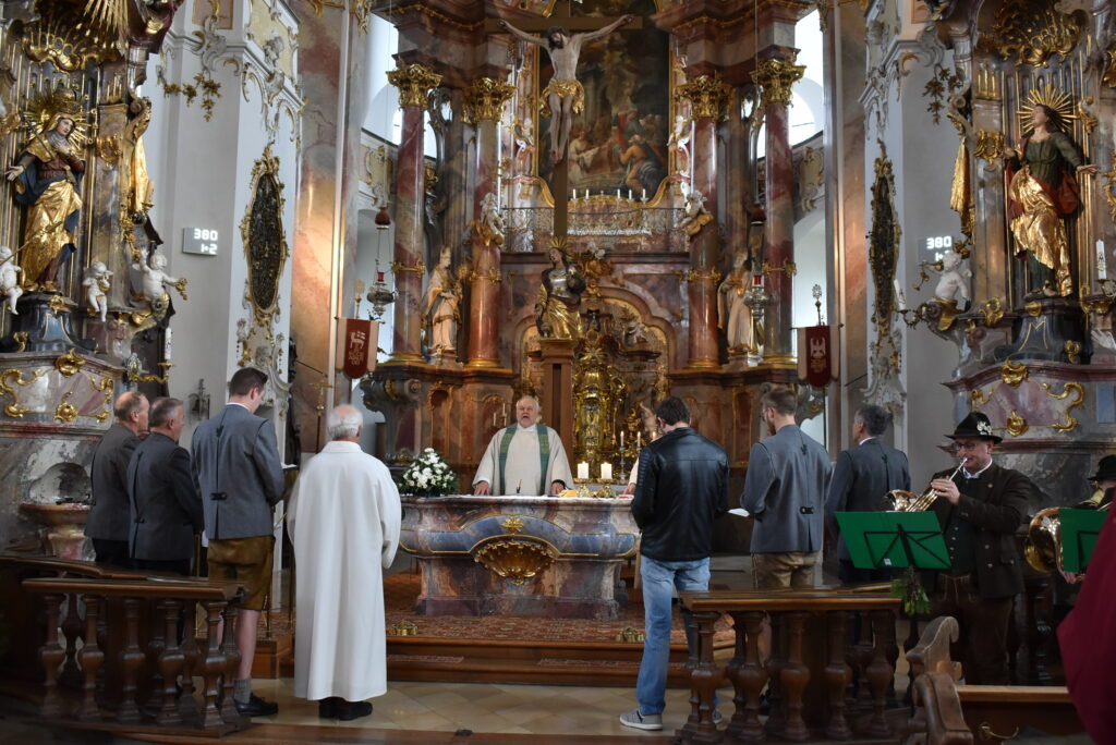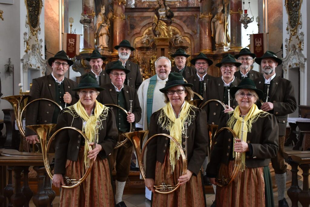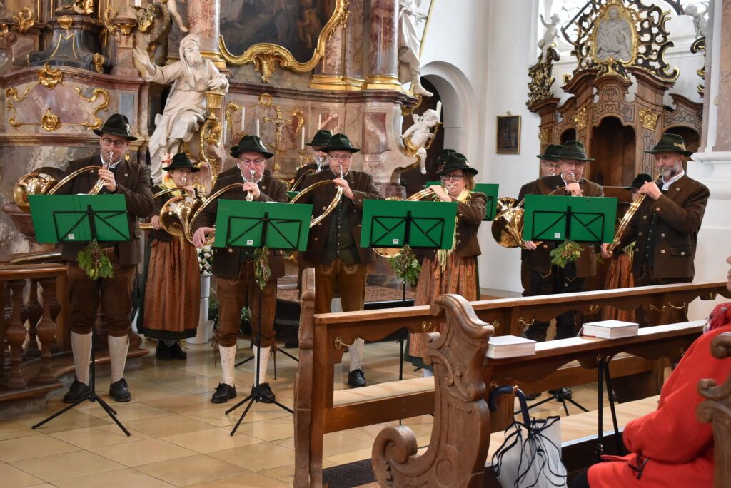 Leutkirch / Maria Steinbach – Die Sonntagsmesse vom 5. November wurde in Maria Steinbach als Hubertusmesse gefeiert. Eine Jagdhornbläsergruppe aus dem Raum Leutkirch bereicherte den Gottesdienst mit wundervollem Klang. Die Akustik in der reich geschmückten und hohen Kirche von Maria Steinbach war überwältigend.