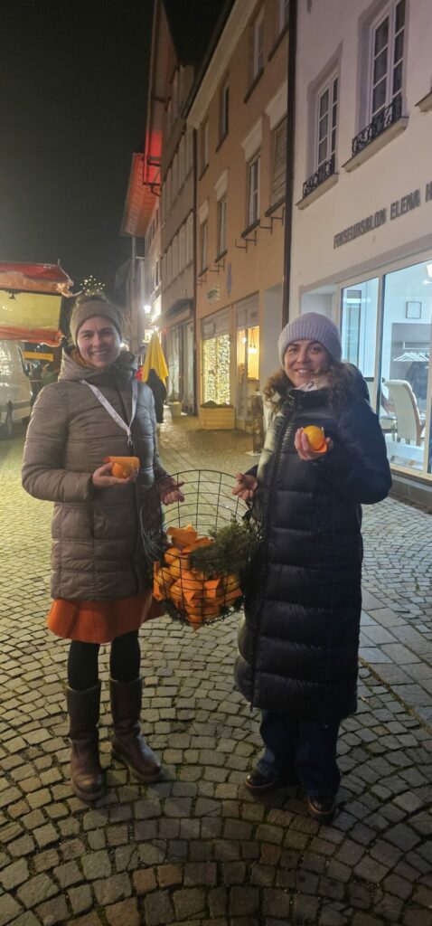 Neben der allgemeinen Öffentlichkeitsarbeit zu diesem Thema organisierte der Verein „Kinder und Frauen in Not“ mit finanzieller Unterstützung aus dem Bundesprogramm „Demokratie leben!“ wieder Orangenverteilaktionen. Auf dem Weihnachtsmarkt, in der Tafel und im Lebensmittel-Fairteiler des Johanniter-Sonnentreffs wurden Orangen verschenkt. An jeder Orange heftete ein Infobrief mit Kontakten, wo man im Notfall Hilfe holen kann – für sich selbst oder für andere.