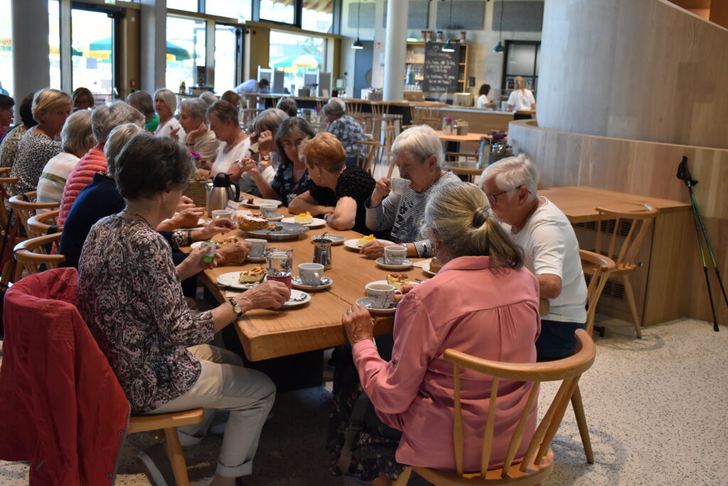 Höhepunkte waren die imposante Kaffeerösterei im Haus, das vielseitig erlebbare Museum, der schöne Partyraum sowie die Dachterrasse, die einen herrlichen Berg- und Rundumblick an diesem sonnigen Herbsttag bot. Natürlich war auch die Kaffee-Kuchen-Stunde wichtig, um ins Gespräch zu kommen, das Erlebte zu besprechen. Herrliche Kuchen und Torten waren geboten.