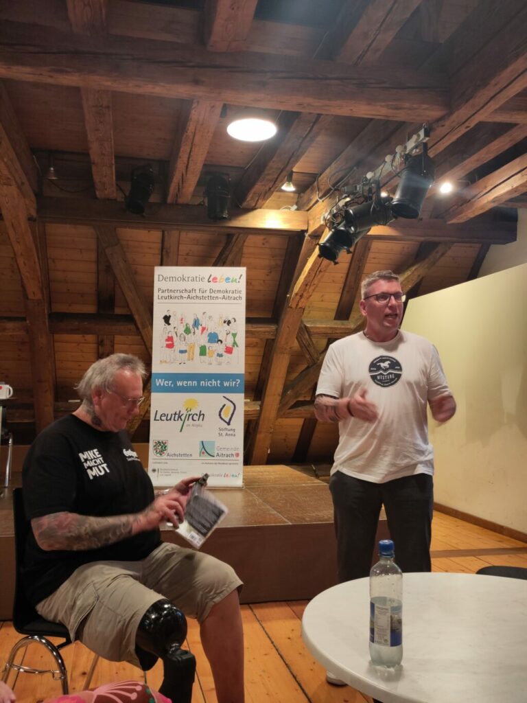 Leutkirch – Am Vorabend des Kinderfestes war der Essener Boxer Mike Schmitz zu Gast im Bocksaal. Dort las er aus seinem Buch „Mike macht Mut – never give up!“. Die Lesung fand im Rahmen eines Laufprojektes statt, mit dem der VdK Leutkirch auf die Inklusion behinderter Menschen im Sportleben aufmerksam machen möchte. Denn Schmitz trägt eine Beinprothese, seit er mit 20 Jahren einen Unterschenkel verlor.