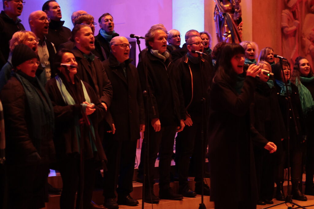 Ein Gospel ist ja im wörtlichen Sinn das Wort Gottes. Der Chor hat also Verkündigung geleistet. Die Besucher in der fast voll besetzten St. Michael-Kirche ließen sich voll auf das gesungene Gotteswort ein. Sie waren eigentlich „spell-bound“, vom Wort (Gottes) gebannt. Es wurde auch mitgeklatscht, halt nicht so eifrig wie in christlichen Gemeinden der amerikanischen Südstaaten, wo diese Musikrichtung ja herkommt. Die Leistung des gesamten Chores verdiente eine Zugabe, nämlich „Bohemian Rhapsody“ mit Solist Peter Barensteiner.