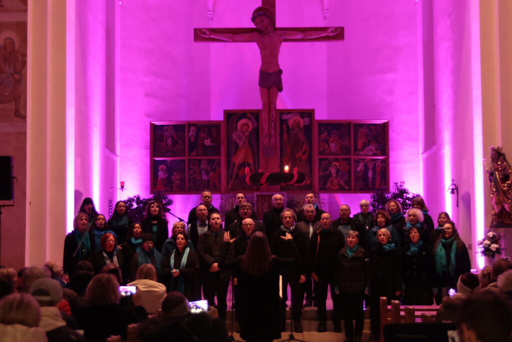 Aitrach / Aichstetten – Geladen hatte der Gospel-Chor Aitrach in die Kirche der Nachbargemeinde Aichstetten, weil die heimische Aitracher Kirche im Chorraum nicht so viel Platz für den rund 40-stimmigen Chor plus Band bieten kann. Und gekommen sind viele – trotz der schweren Wegverhältnisse durch die Neuschneemassen auf den Wegen und Straßen.
