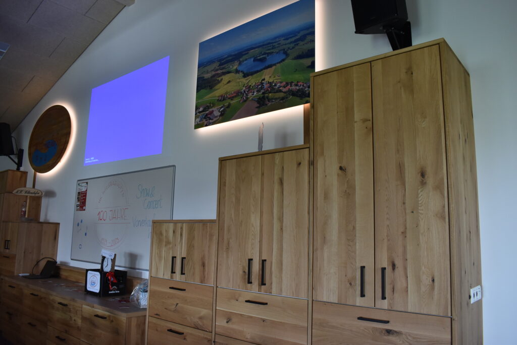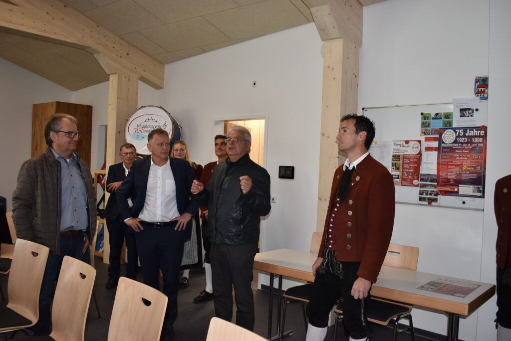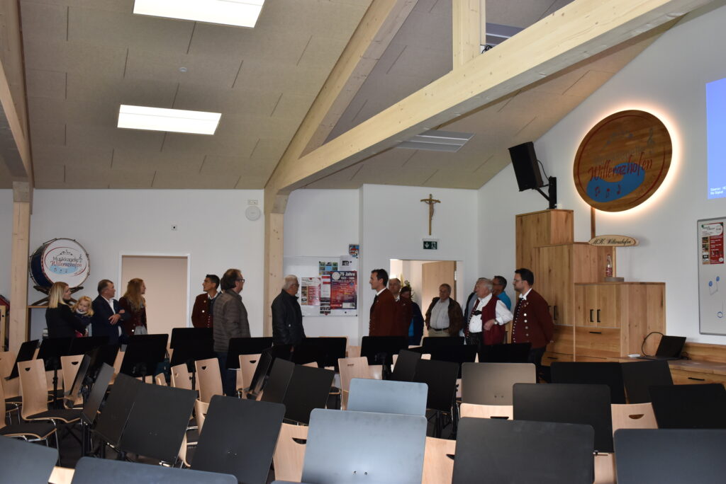 In den anschließenden Grußworten wurde deutlich, wie sehr die fast 60 Willerazhofer Musikanten und auch andere Vereine diese neuen Räumlichkeiten herbeigesehnt hatten. Jahrelang wurde schon geplant, Fördergelder beantragt uvm. Der moderne Neu- und Anbau an die Turn- und Festhalle in Willerazhofen mit diversen Räumen, darunter auch eine kleine Küche mit Sitzgelegenheiten und dem Herzstück, einem Multifunktionsraum mit wunderschönen Holzschränken, kommt der Musikkapelle (MK) sowie anderen Vereine und der benachbarten Schule zugute. Bei Führungen konnten sich zahlreiche Besucher von der Qualität und den meisterlichen Handwerksarbeiten überzeugen.