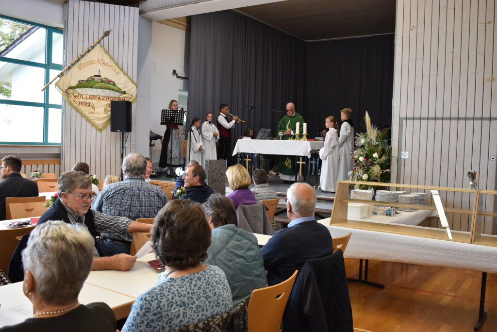 Musikalisch wurde die Messe von der eigenen Willerazhofer Jugendkapelle unter Leitung von Dirigent Manfred Schuhmacher umrahmt. Die jungen Musikanten spielten nachmittags auch alle bei der Jugendkapelle Leutkirch-Achtal nochmals mit. Den Frühschoppen gestaltete die Paten- und Nachbarkapelle aus Heggelbach unter ihrem Dirigenten Christoph Sauter mit flotten Polkas und Unterhaltungsmusik. Es war die erste Kapelle, die die ebenfalls neu gestaltete Bühne einspielen durfte.