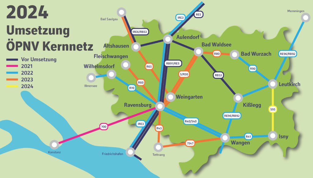 Zur Hauptverkehrszeit bietet er Pendler/innen damit eine echte Alternative zum Auto. „Der Bus ist auf die Züge in Richtung München und Lindau abgestimmt und bietet auch einen Umstieg auf die Regiobuslinien nach Leutkirch, Bad Wurzach, Bad Waldsee und das Schussental“, so Sievers weiter. Der neue Schnellbus ergänzt die Regio- und Schnellbusse des Landkreises optimal.