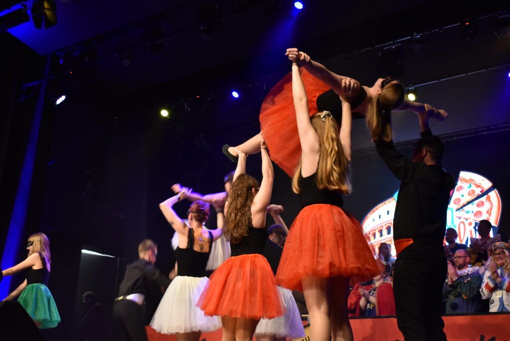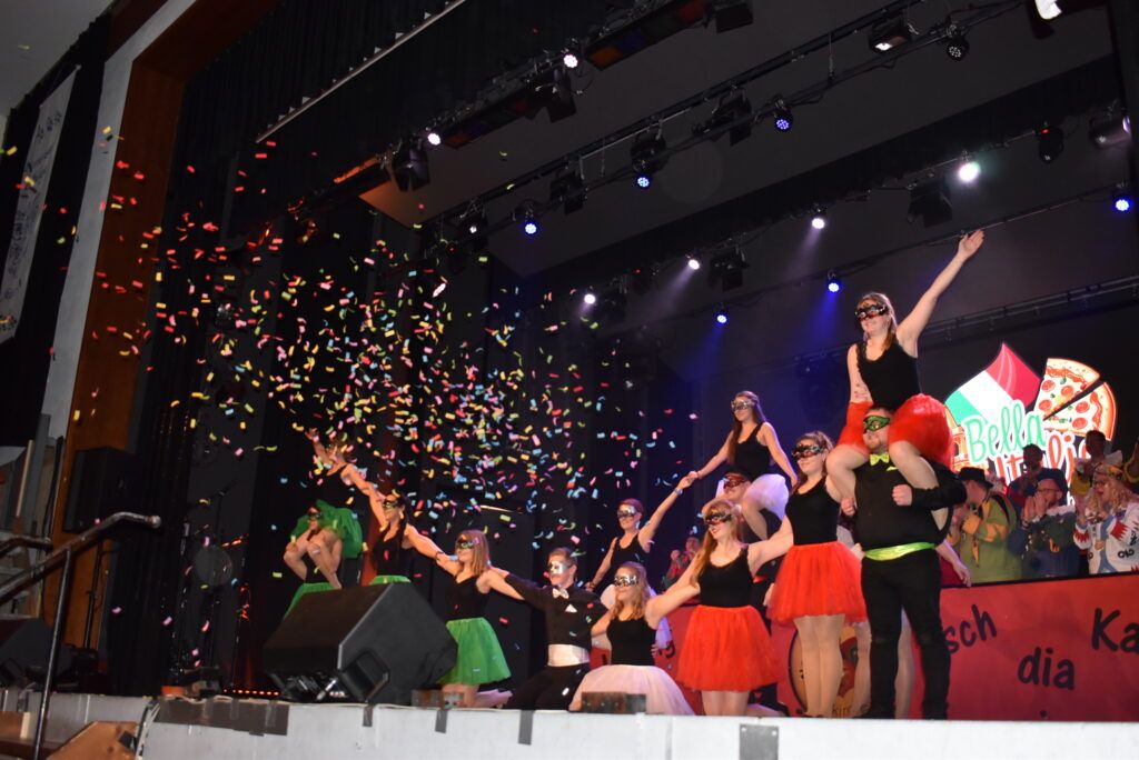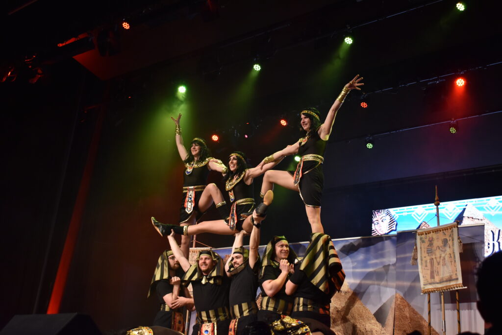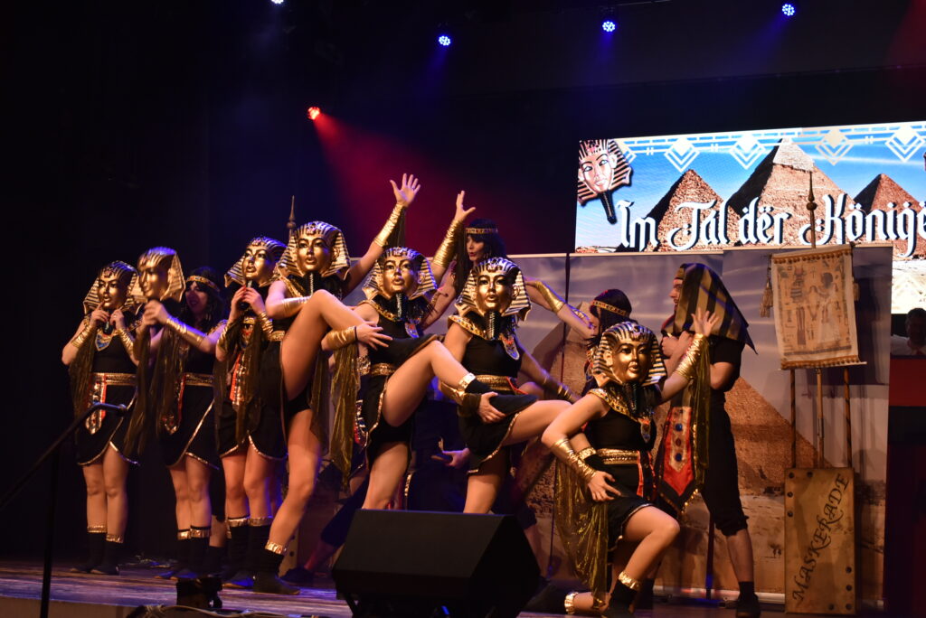 Den Auftakt machte traditionell die Prinzengarde mit flotten Tänzen unter der Leitung von Saskia Lamp. Die Gruppe Maskerade aus Neukirch überraschte mit einem Ausflug ins alte Ägypten. Pharaoninnen schwebten über den Köpfen des Volkes, Mumien tanzten sich frei, die sehr eindrucksvolle Choreografie wurde mit frenetischem Applaus belohnt. Eine Tanzrunde mit Italo-Hits sorgte für viel Bewegung beim Publikum.