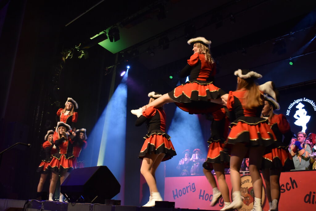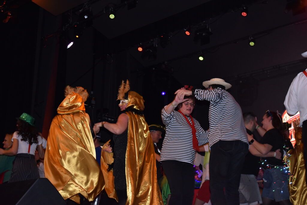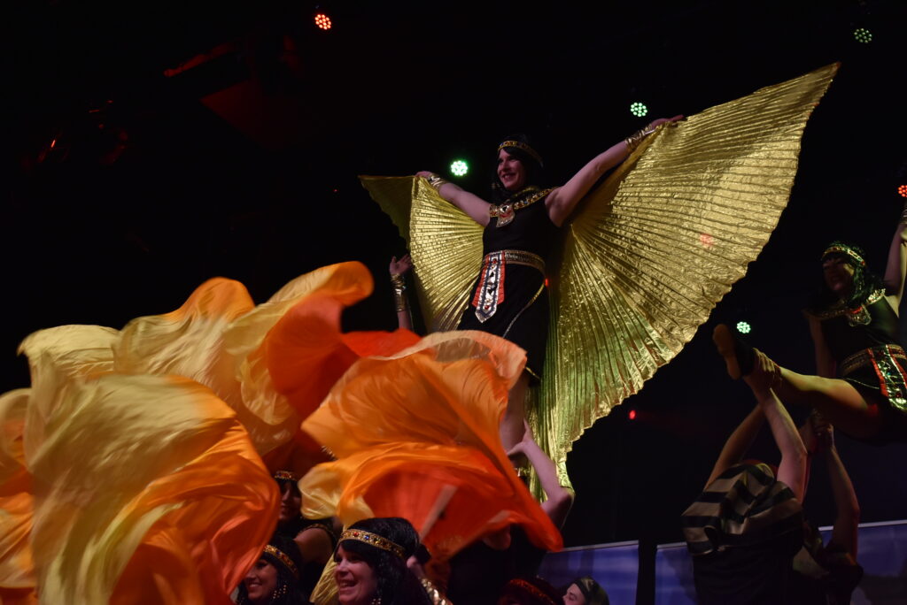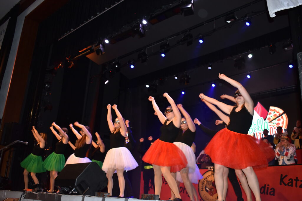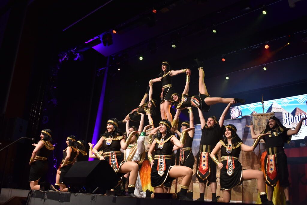 Den Auftakt machte traditionell die Prinzengarde mit flotten Tänzen unter der Leitung von Saskia Lamp. Die Gruppe Maskerade aus Neukirch überraschte mit einem Ausflug ins alte Ägypten. Pharaoninnen schwebten über den Köpfen des Volkes, Mumien tanzten sich frei, die sehr eindrucksvolle Choreografie wurde mit frenetischem Applaus belohnt. Eine Tanzrunde mit Italo-Hits sorgte für viel Bewegung beim Publikum.