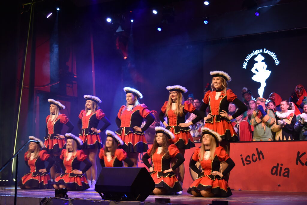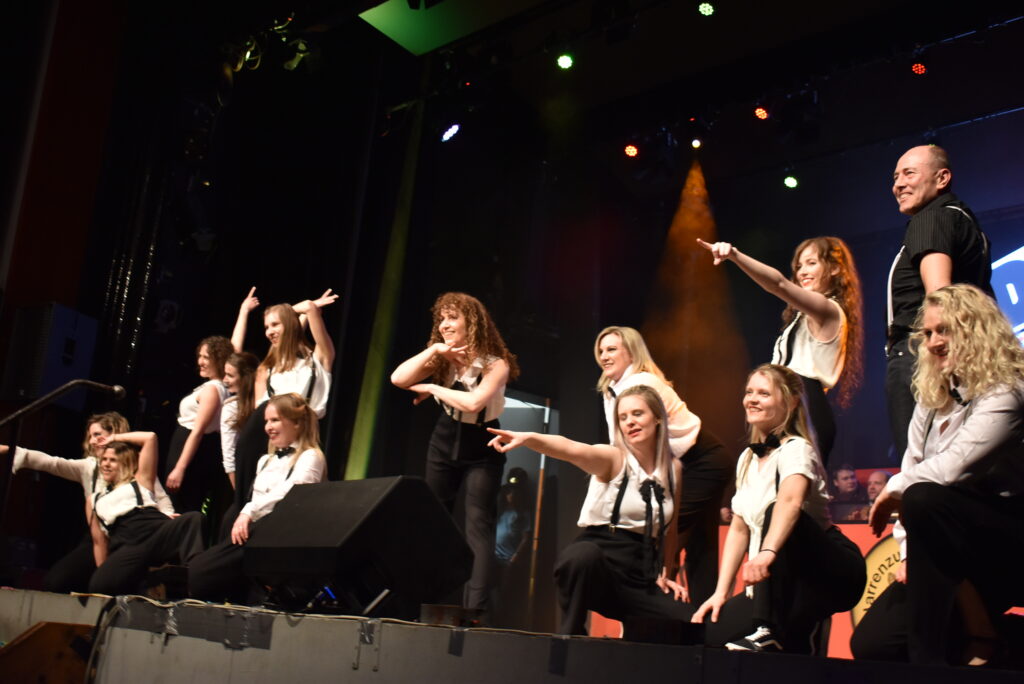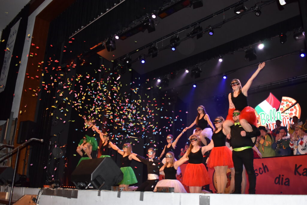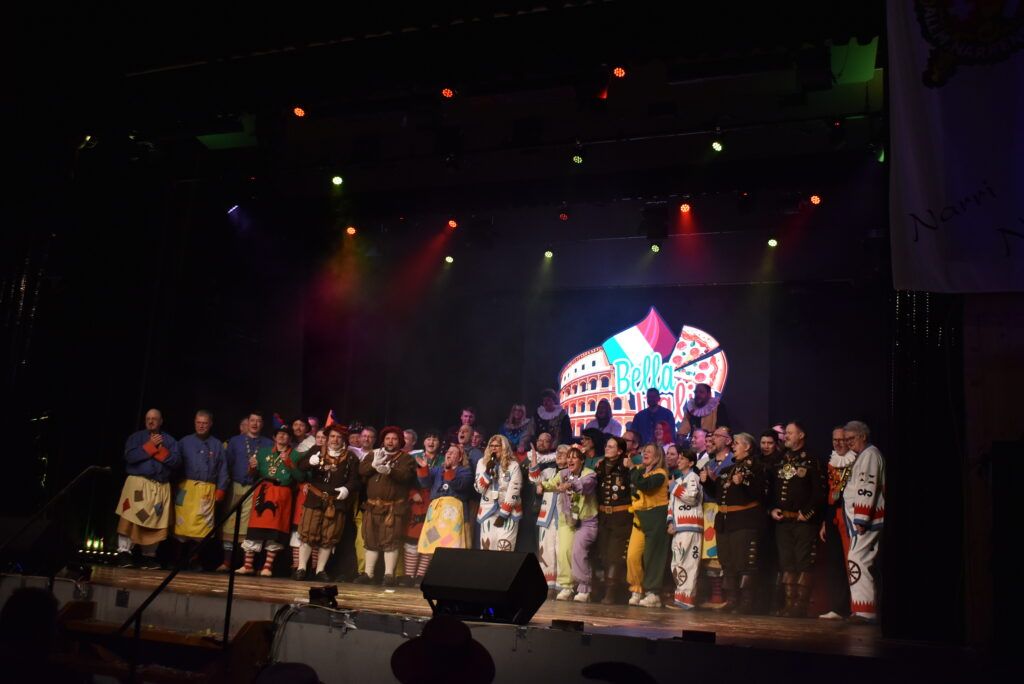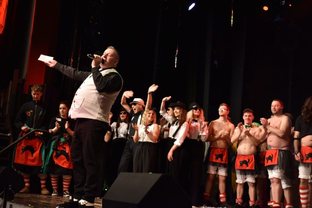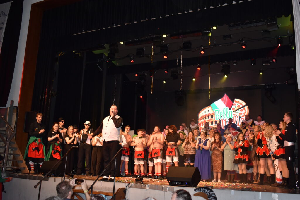Weiter ging‘s im Programm, hervorragend moderiert von Freddy Holzmüller (Bild), der mit seiner Tochter Franzi immer wieder zum Mitsingen und Schunkeln einlud. Singen war auch beim Chor der Narrenzunft angesagt. Unglaublich, wie viele italienische Texte die Sänger/innen bei ihrem Medley draufhatten. Die Showtanzgruppe der Nibelgauer machte den Abschluss des hochkarätigen Programms, bevor zum Finale nochmals alle Akteure und das gesamte Präsidium auf die Bühne kamen.