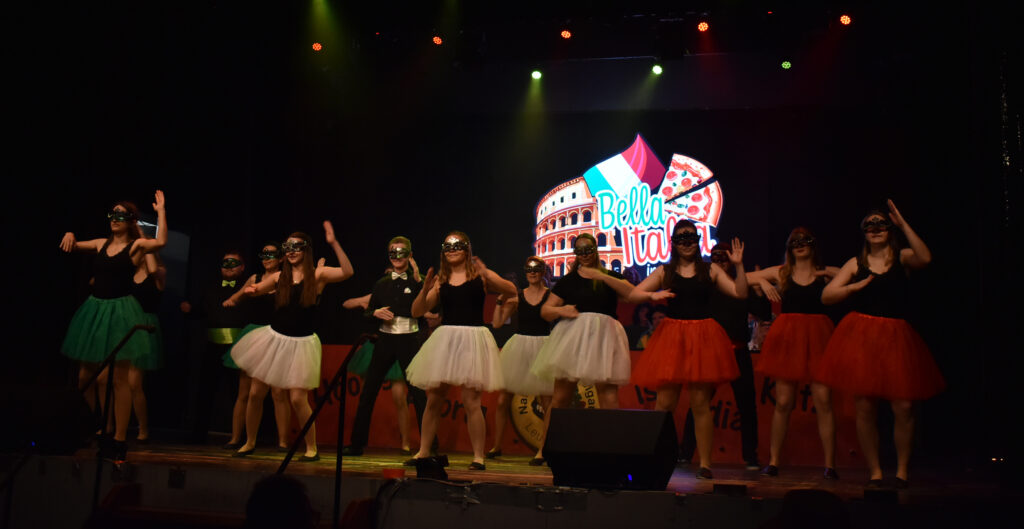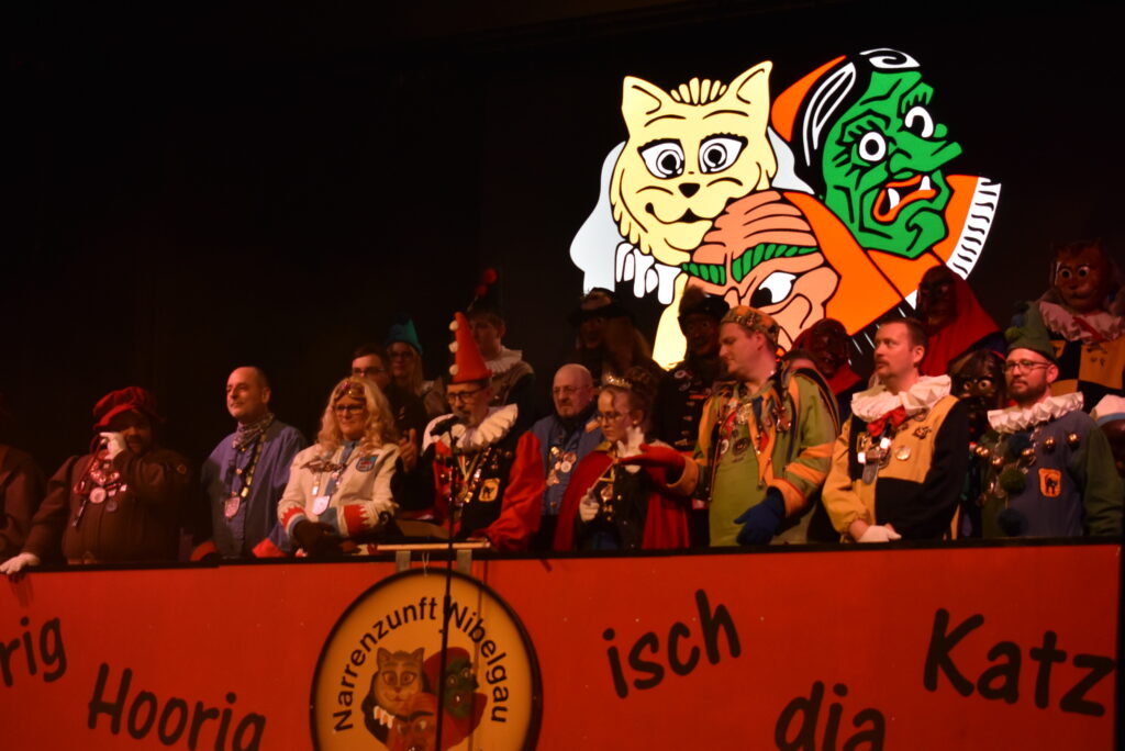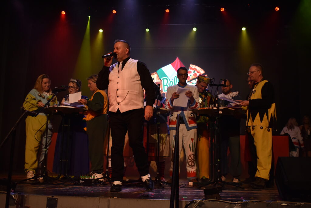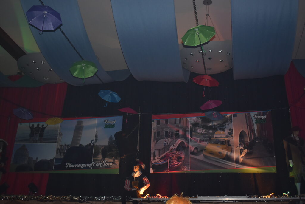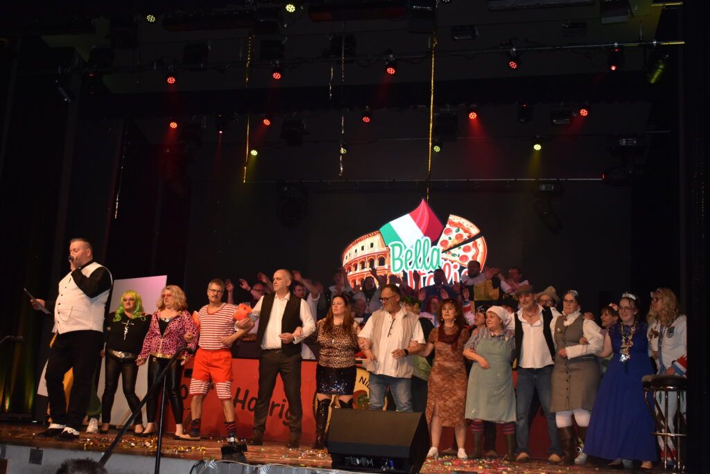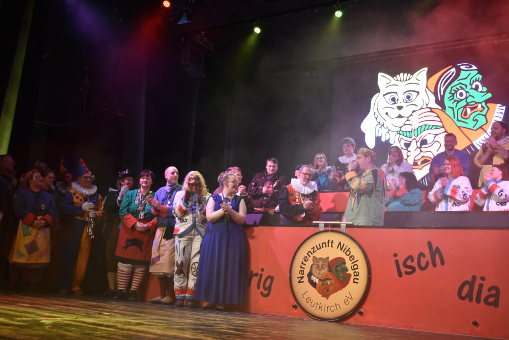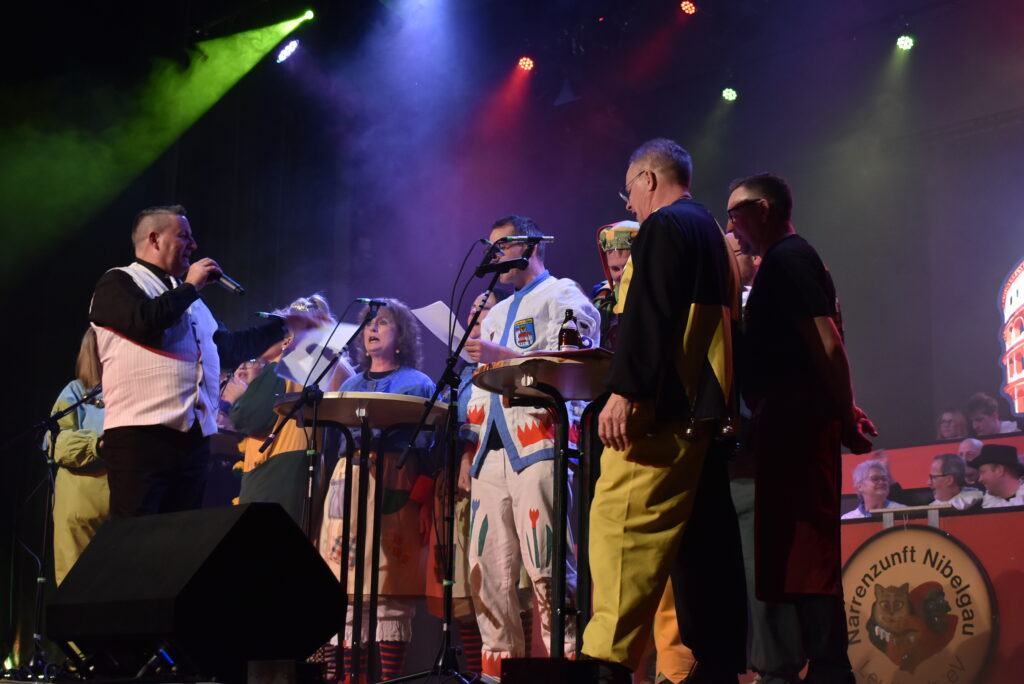 Weiter ging‘s im Programm, hervorragend moderiert von Freddy Holzmüller (Bild), der mit seiner Tochter Franzi immer wieder zum Mitsingen und Schunkeln einlud. Singen war auch beim Chor der Narrenzunft angesagt. Unglaublich, wie viele italienische Texte die Sänger/innen bei ihrem Medley draufhatten. Die Showtanzgruppe der Nibelgauer machte den Abschluss des hochkarätigen Programms, bevor zum Finale nochmals alle Akteure und das gesamte Präsidium auf die Bühne kamen.