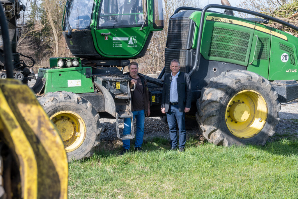 Ein weiterer Besuch in der „Holzbranche“ führte OB Henle zur Firma Forst Kämmerle in Hofs. Diese sorgt mit mehreren Harvestern (Vollerntern) und Forwardern (Rückezügen) für eine naturnahe und schonende Waldbewirtschaftung.