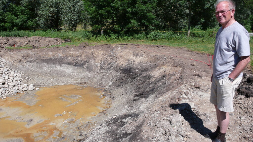 Als ehrenamtlicher Beauftragter für die Bodendenkmalpflege nimmt Albrecht Roth hier Erdarbeiten am Stadtweiher in Augenschein (im Jahre 2010).
