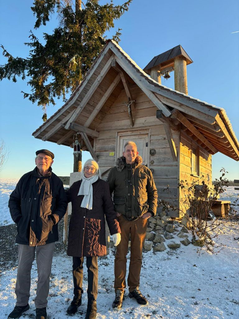 Zu Neujahr ein Besuch an der neuen Kapelle am Haidrain bei Reichenhofen mit Frau und Sohn Martin.