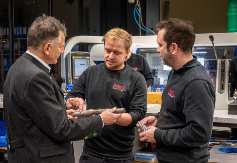 Leutkirch – Kürzlich stattete Oberbürgermeister Hans-Jörg Henle der DOKE GmbH Schleiftechnik aus Leutkirch einen Besuch ab. Das Unternehmen hat ganz aktuell mit dem Bau eines neuen Firmensitzes im Gewerbegebiet Ströhlerweg begonnen.