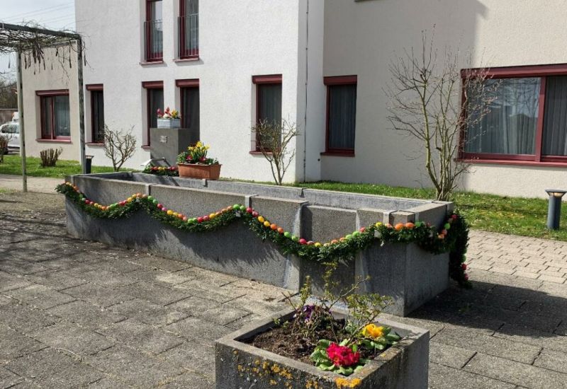Aitrach – Liebe Mitbürgerinnen und Mitbürger, der Brunnen mitten im Ort vor dem Seniorenzentrum erstrahlt Dank ehrenamtlicher Helferinnen im österlichen Glanz. Ich habe mich sehr gefreut, als ich daran vorbeigelaufen bin und habe gleich ein Foto gemacht. Ich denke so geht es vielen Bürgerinnen und Bürgern, dass sie kurz stehen bleiben und denken: schön.