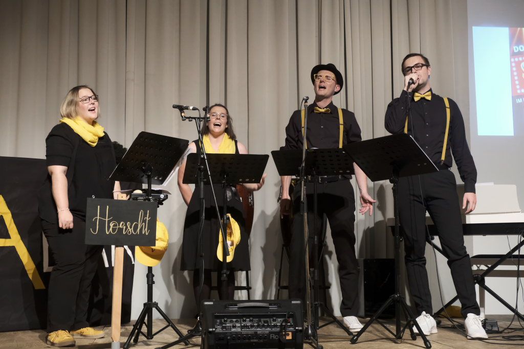 Als dann kurz nach 19.30 Uhr Lisa Burger vom Vorstandsteam des Frauenbundes Alttann in dem im Club-Style bestuhlten Festsaal die Gruppe ankündigte, wurden die Musiker bereits mit begeistertem Applaus begrüßt, denn viele Wurzacher machten den Auftritt zu einem Heimspiel für die „A-Cappella Bänd“.