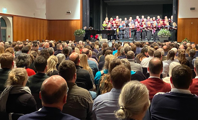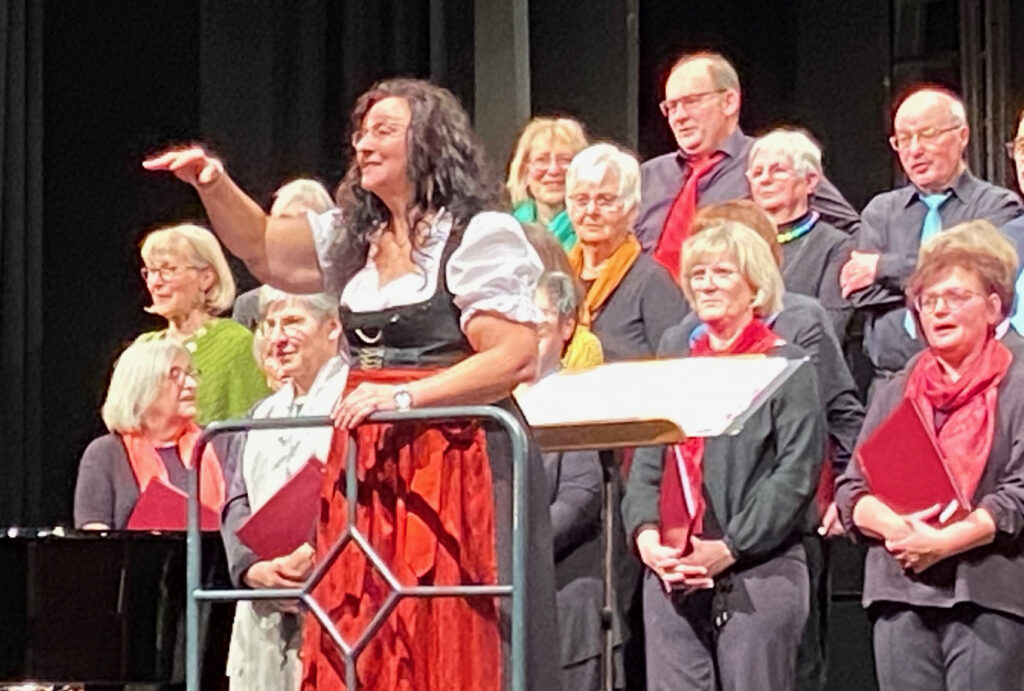Chordirigentin Anne-Regine Sieber leitet das Saalständchen für die Geburtstagskinder.
