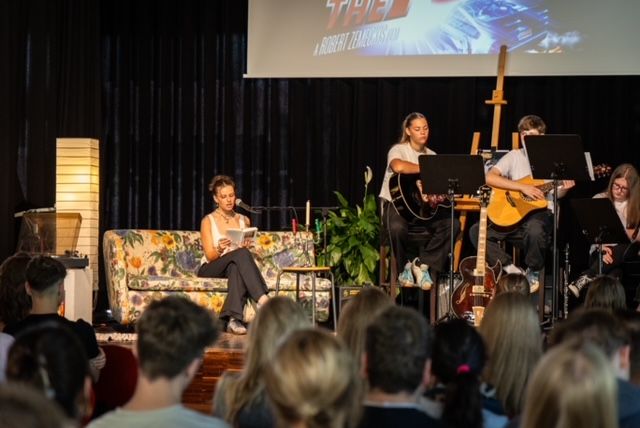 Das Konzept der Veranstaltung ist stimmig: Eine Schülergruppe hat Songs aus den 80ern ausgewählt und einstudiert, die zusammen mit einer kleinen Band, ebenfalls aus Schülern der Klasse, vorgetragen werden. Eine andere Gruppe suchte Textstellen aus dem Roman aus, die einzelne Höhe- und Wendepunkte der Handlung markieren. Liedtexte und Buchstellen sind inhaltlich passend aufeinander abgestimmt und vertiefen sich gegenseitig.
