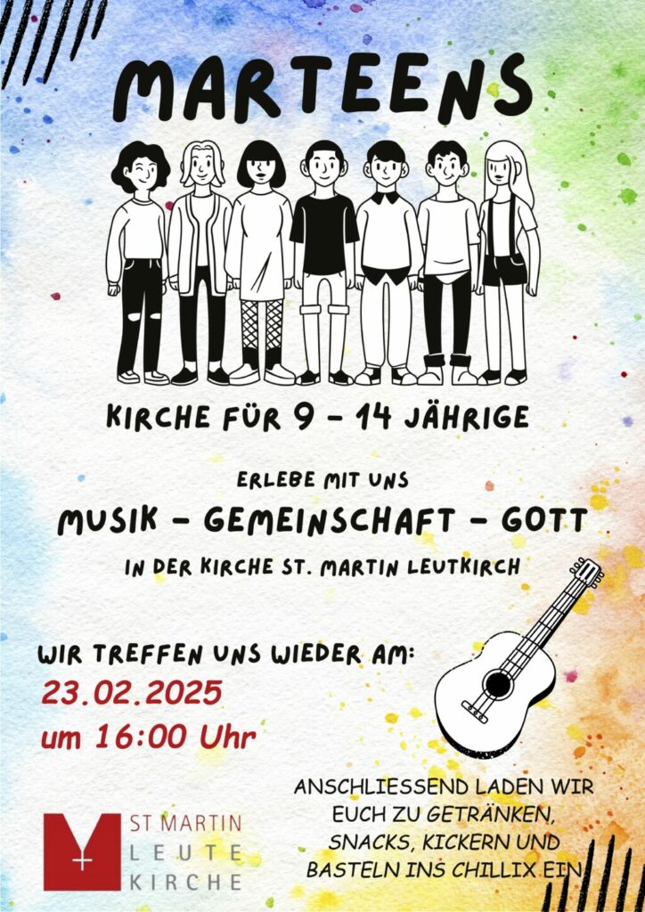 Am Sonntag, 23. Februar, 16.00 Uhr laden die Mar-Teens zum nächsten Gottesdienst in der Pfarrkirche.