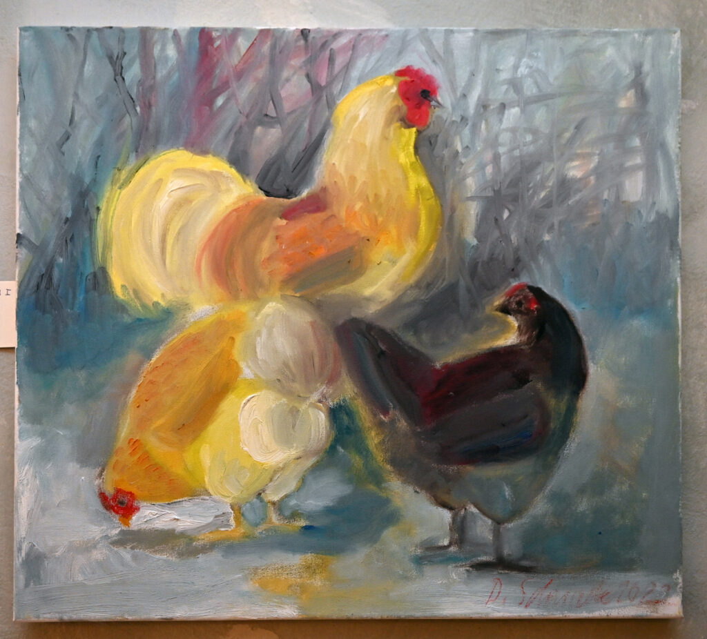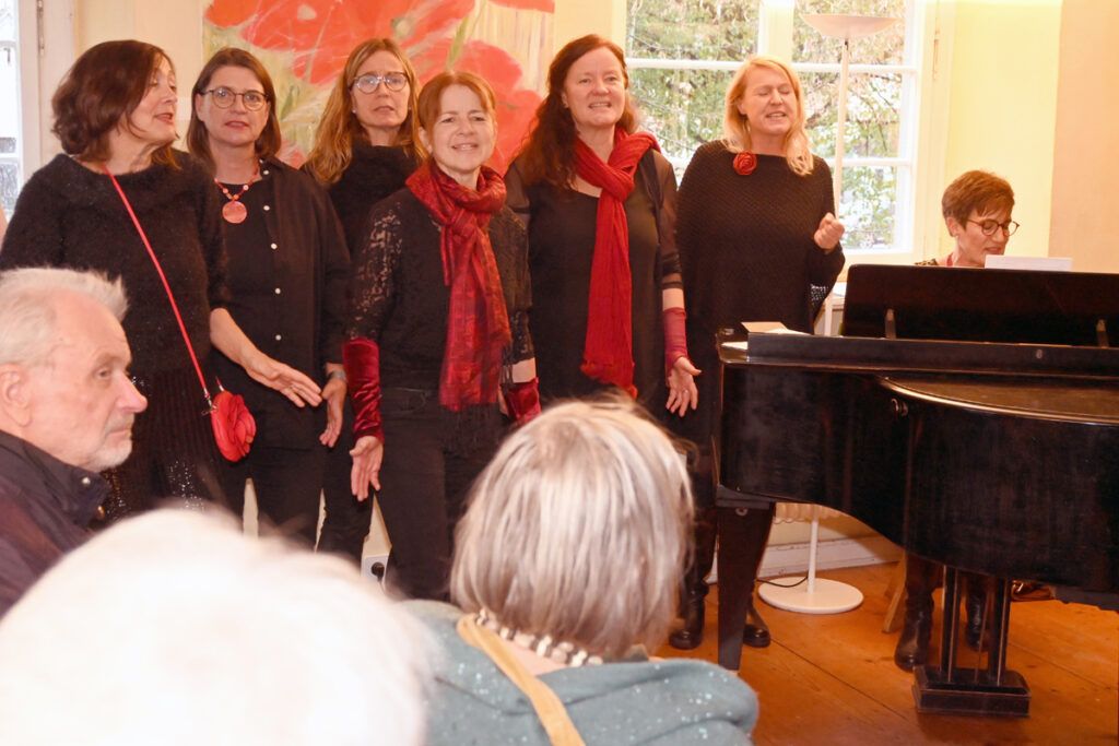 Wer sich an den Gemälden sattgesehen hatte, konnte auch den Magen füllen. In der Guten Stube im Erdgeschoss gab es Kaffee und Kuchen. Von fleißigen Helfern in der Küche frisch aufgebrüht und angeschnitten. Eine Spende dafür wurde gerne angenommen.
