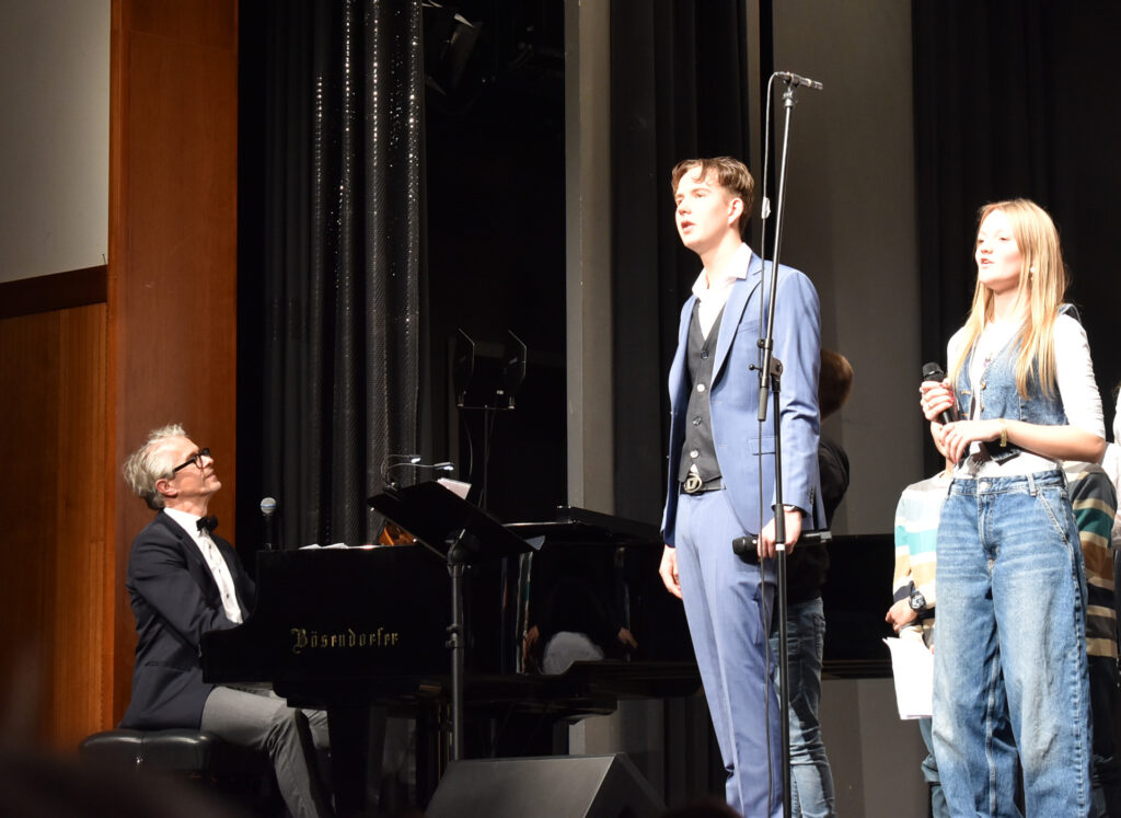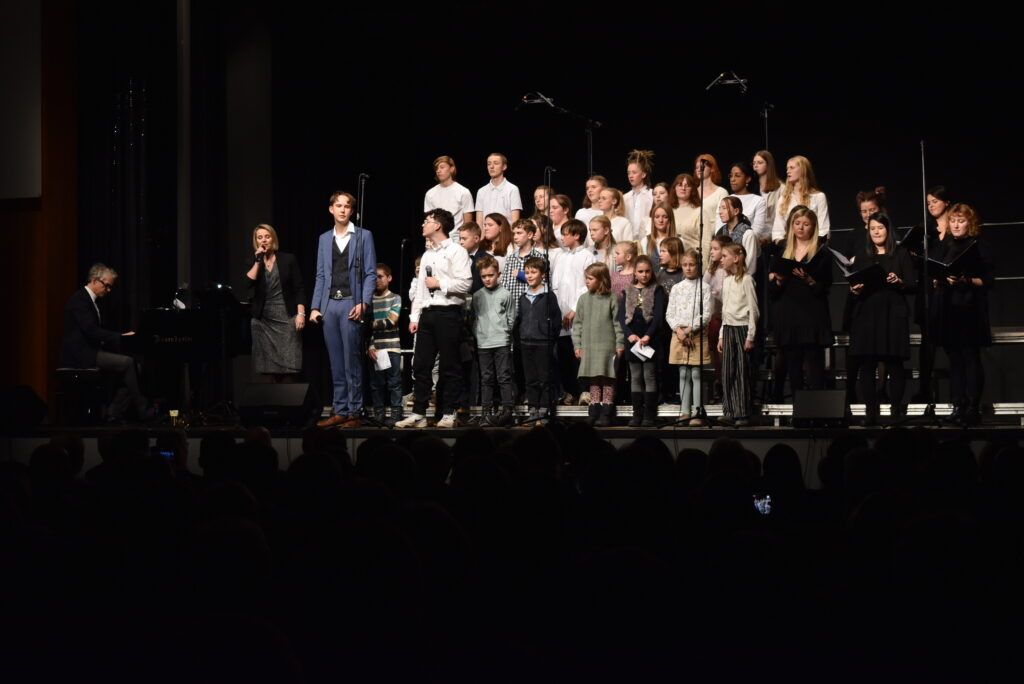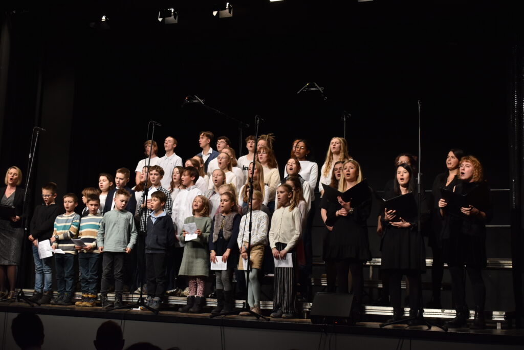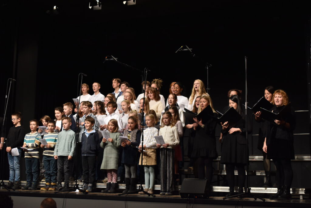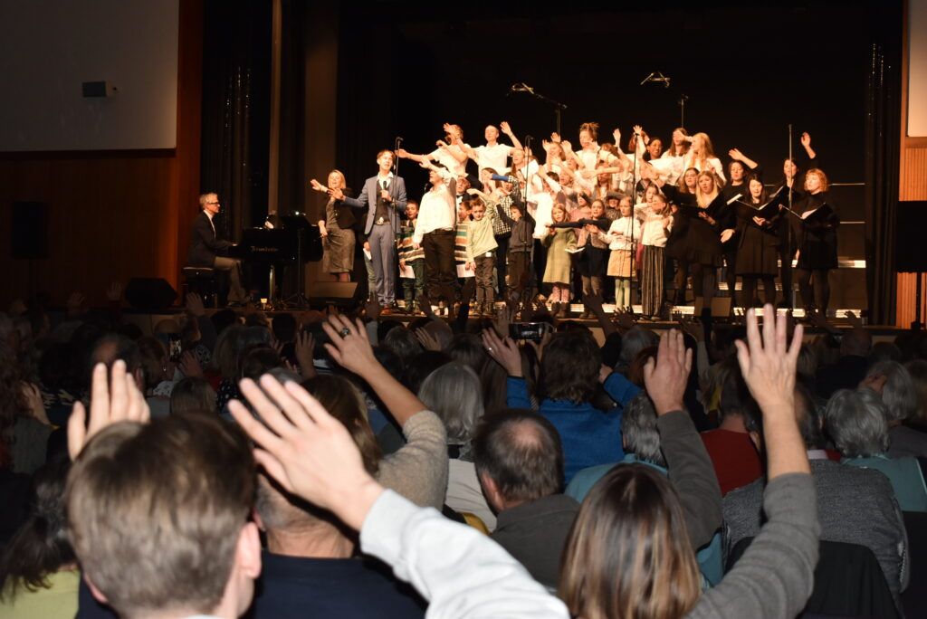 Als Höhepunkt erklang der bekannte Song von Michael Jackson „Heal the world“, zu dem zwei jugendliche Solisten hervortraten. Alle Chöre sangen mit und nicht wenige Zuhörer summten das Lied, das Gänsehaut macht. Sehr lange wurde geklatscht für all die tollen Sänger/innen mit Solistin und dem „Mann am Klavier“. Brigitte Göser überreichte Geschenke, dankte allen Mitwirkenden, dem Publikum und erklärte, wofür die Spenden vorgesehen sind: zur Hälfte für den Kinder- und Jugendchor, zur Hälfte für die Caritas, um Familien, die in Not geraten sind, zu unterstützen.