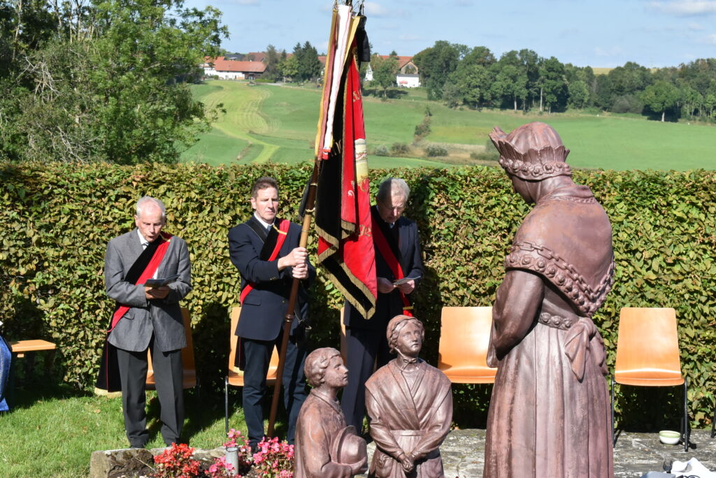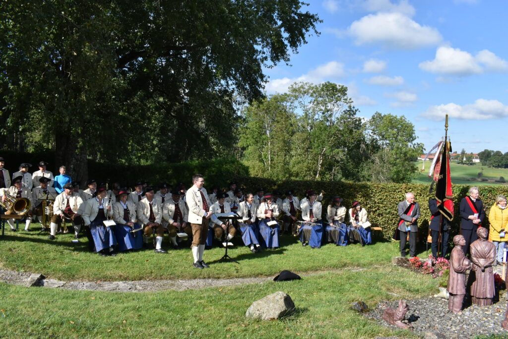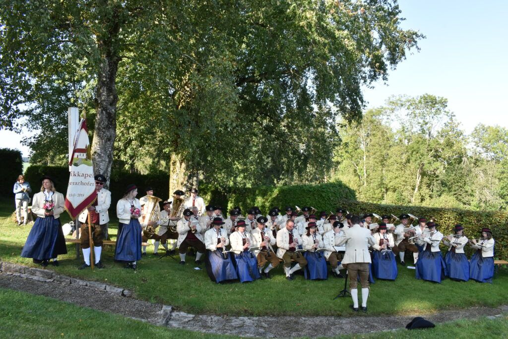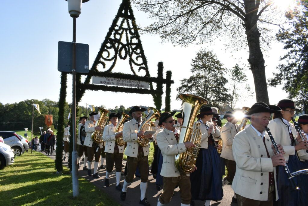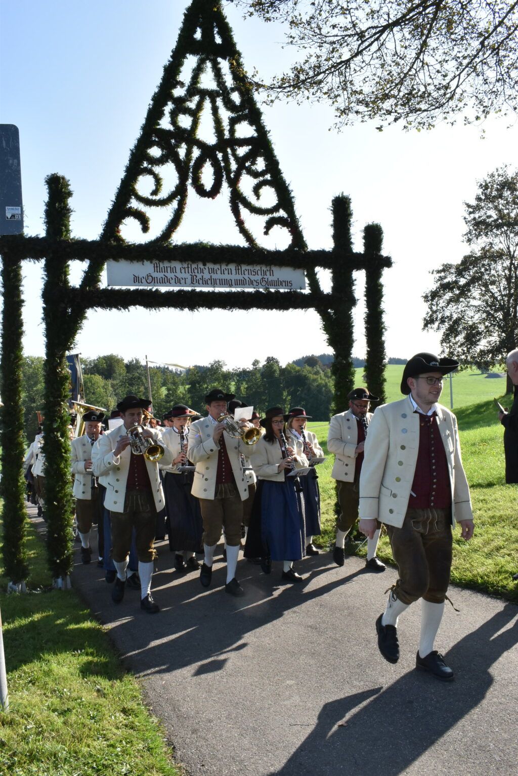 Besonders schön fand er es in Engerazhofen beim Kapellenfest, wo alle Generationen zusammenkommen, die Musikkapelle spielt, die Vereine da sind, die Kommunionkinder und bedankte sich bei allen. Auch seitens der Musikkapelle kam ein großes Dankeschön an das Team, das sich um die La Salette Kapelle kümmere, um die Pflege der Außenanlage und allen, die heute am Kapellenfest für Organisation in Kirche und im Haus der Mitte bei der Bewirtung ehrenamtlich sorgen. Der gesamte Erlös geht zugunsten der Kapelle. Auch dem Frauenteam wurde ein Vergeltsgott ausgesprochen, für die schöne Gestaltung des Blumen- und Buchs-Torbogens, der noch eine Weile stehen bleibt und besichtigt werden kann.