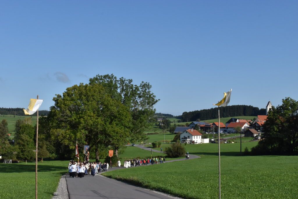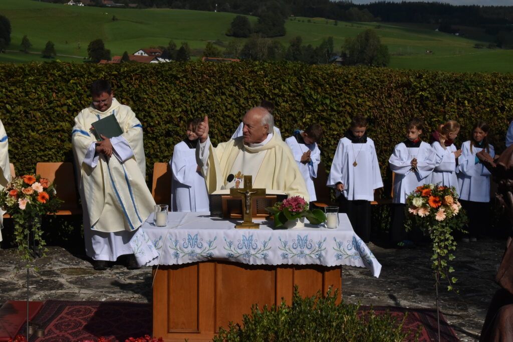 Nach vielen gemeinsamen Liedern und dem Segen ging es für etliche noch ins Haus der Mitte nach Engerazhofen zum Mittagessen und Kaffee mit Kuchen. Um 14 Uhr fand die traditionelle Marienandacht in der Kapelle La Salette statt, ebenfalls zelebriert von Dekan a.D. Heinz Leuze.