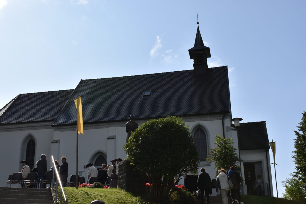Kirche sei auch die Einrichtung, die sogenannte Kirche von oben, ein manchmal schwerfälliger Apparat, wie es manche empfinden. Wichtig sei die Kirche von unten, die Gemeindemitglieder, das Fundament. Nur sie könnten die Kirche mit Leben füllen. „Gott ist nicht irgendwo hinter den Wolken, sondern mitten unter uns!“. So wünschte sich Pfarrer Leuze, dass so wie heute zum Kapellenfest wieder viele Menschen zu dieser lebendigen und gelebten Kirche finden.