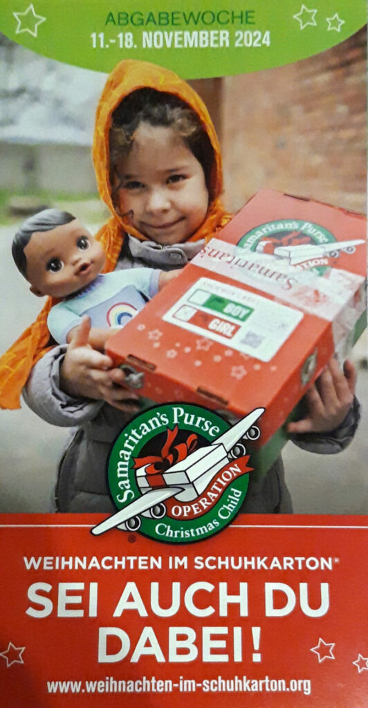 Leutkirch – Alle Jahre wieder! Auch in diesem Jahr wieder findet die Aktion „Weihnachten im Schuhkarton“ des Vereins Samaritan´s Purse statt. Seit 1996 erleben Kinder in Osteuropa und weltweit, wie Glaube, Hoffnung und Liebe durch einen Schuhkarton für sie greifbar werden. In Leutkrich kann man die Schuhkartin-Geschenke bei Stör & Wagenseil (neben Werdich) abgeben.