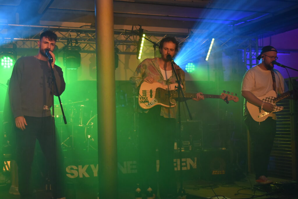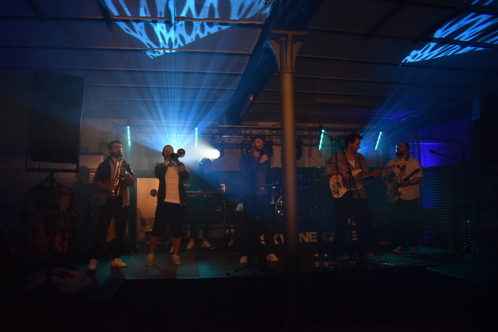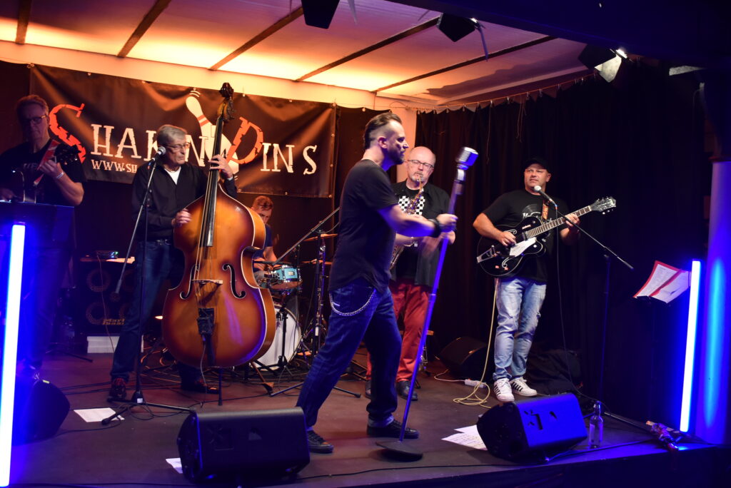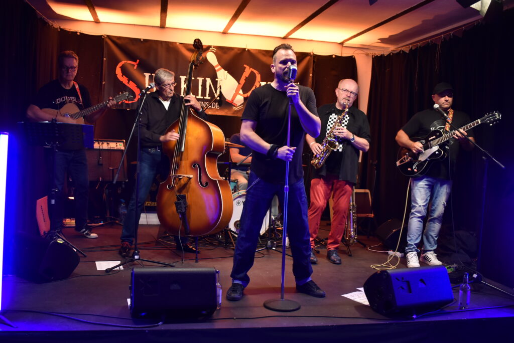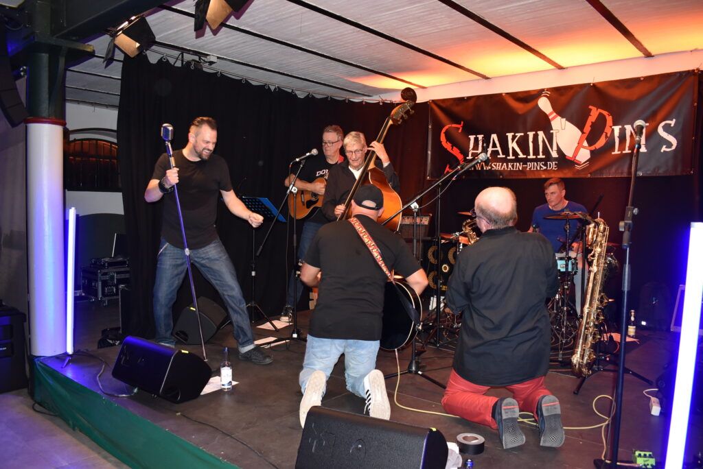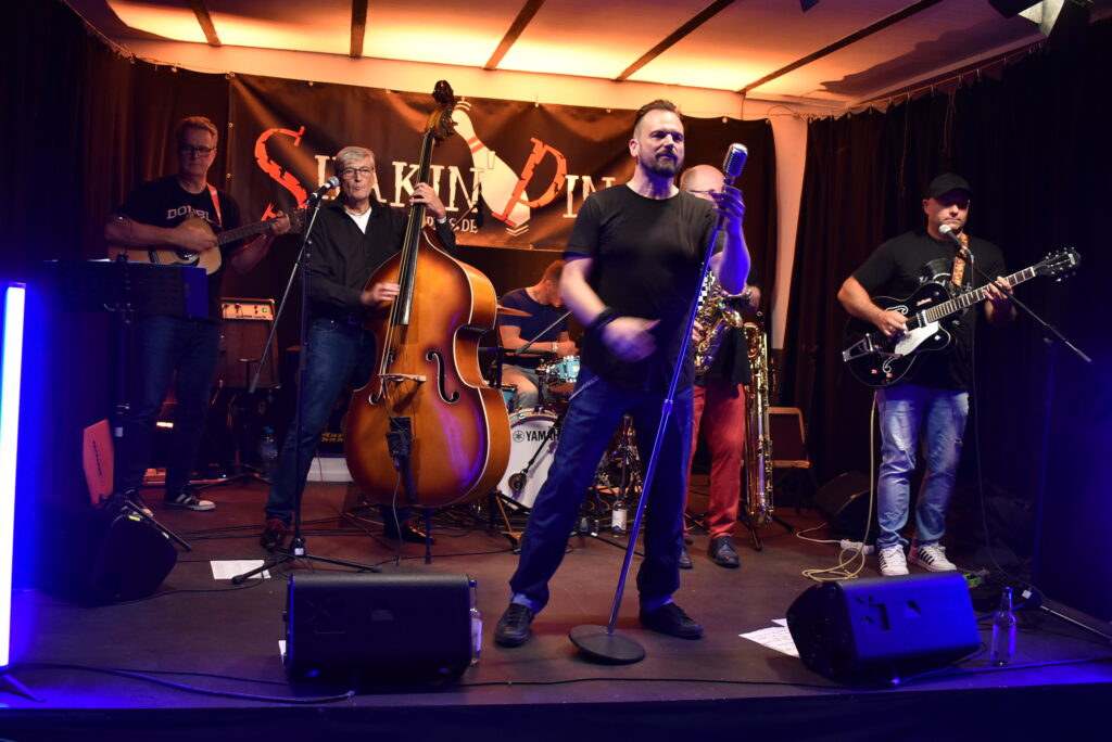 Drinnen drehte sich das Tanzbein derweil weiter. Die „Shaking‘ Pins“ brachten mit ihrem waschechten Rock’n’Roll nicht allein die Malztennen-Bühne zum Beben, sondern bewegten sich mit ihrem Sänger direkt ins Publikum. Das sorgte für heiße Stimmung – ergänzt durch allerhand kühle Getränke – direkt im gleichen Raum geboten.