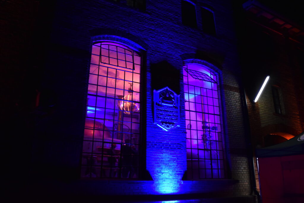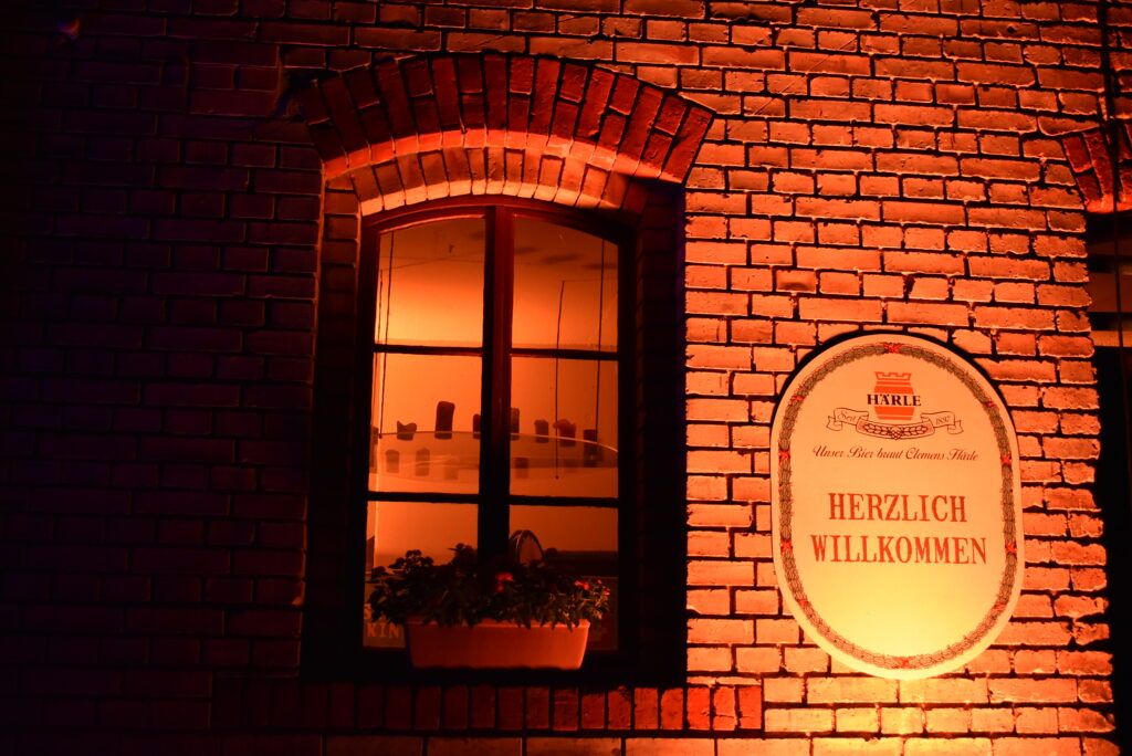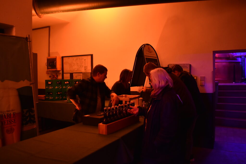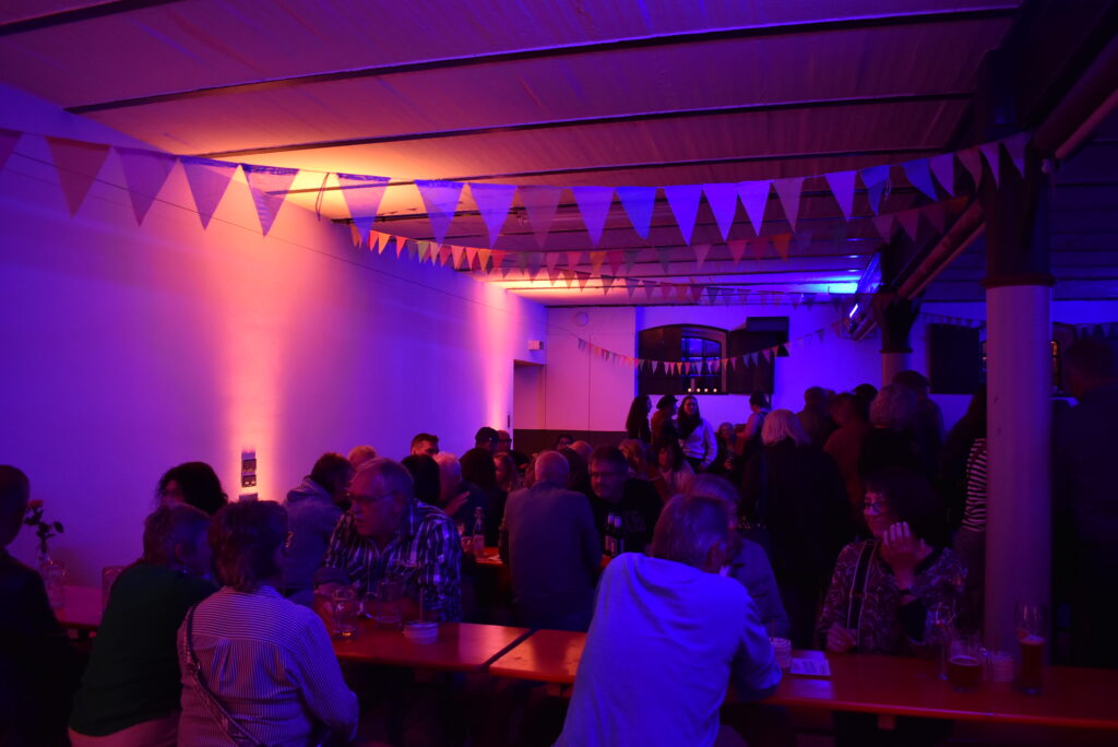 „Häreinspaziert“! Schon von der Wangener Straße aus zeigte sich das alte Brauereigebäude aus dem Gründungsjahr 1897 erhellt. Allerhand Leuchten strahlten seine Ziegelwand bunt an. Wer sich vor der Feierwelt dort drinnen noch stärken wollte, konnte draußen zwischen frisch gegrillten Wüsten und direkt erhitzten Kässpätzle wählen. Drinnen bot derweil allerhand Flüssiges beinahe eine Qual der Wahl.