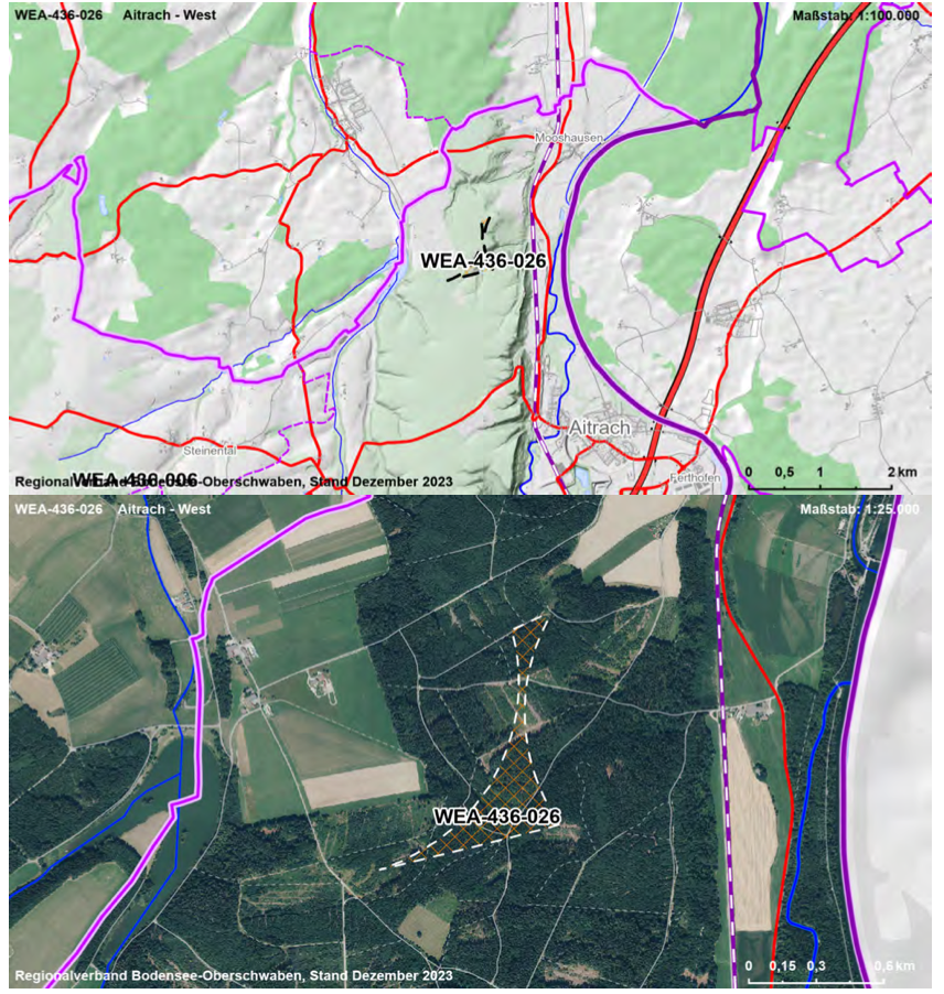 Die Verwaltung stellte dar, dass der Regionalplan auf Grund der bundes- und landesgesetzlichen Vorgaben 1,8 % der Regionsfläche mit den Landkreisen Ravensburg, Bodensee und Sigmaringen als Vorranggebiete für die Windenergie bis September 2025 ausweisen muss. Falls das Ziel nicht erreicht wird, hat der Bundesgesetzgeber bereits jetzt im Baugesetzbuch geregelt, dass eine sogenannten „Superprivilegierung“ eintritt, also die Anlagenstandorte nicht mehr gesteuert werden können. Bei der Suche nach Standorten hat der Regionalverband verschiedene Kriterien angewendet, allen voran natürlich die Windleistungsdichte und dann Artenschutzkriterien, Wasserschutzgebiete, usw. sowie natürlich den Abstand zur Wohnbebauung. Zur Wohnbebauung im Außenbereich wurde ein Abstand von 600 m angesetzt und zu Ortschaften von 750 m.