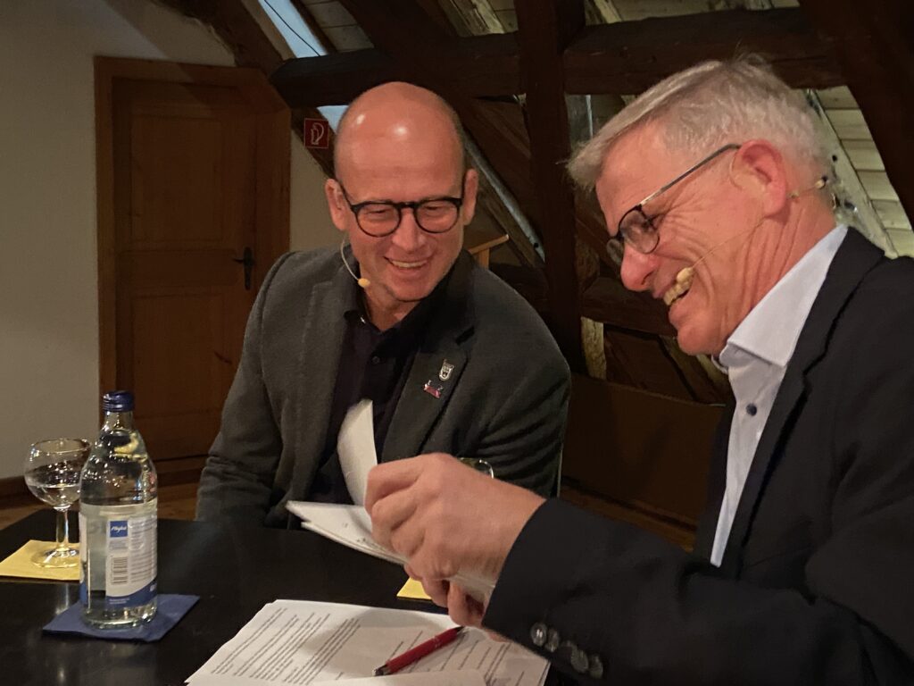 Leutkirch – Fragen über Fragen. Wie rackert sich ein Fußballverein nach drei Insolvenzen hoch in die Zweite Bundesliga? Wie ließen sich am 3. Oktober 2023 17.000 Fußballfans in ein rappelvolles Donaustadion Ulm locken? Darüber und über noch viel mehr unterhielten sich am Montagabend SSV-Ulm-Geschäftsführer Markus Thiele und Leutkirchs Kulturamtsleiter Karl-Anton Maucher beim „Talk im Bock“ (TiB) vor gut 50 Leuten.