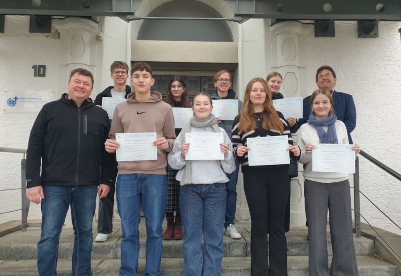 Blönried – Zehn Schülerinnen und Schüler des Studienkollegs durften sich über ihre frisch erworbenen DELF-Zertifikate (Diplôme d’études de langue francaise) auf dem Niveau B1 freuen, welche ihnen durch den stellvertretenden Schulleiter Herr Unglert überreicht wurden.
