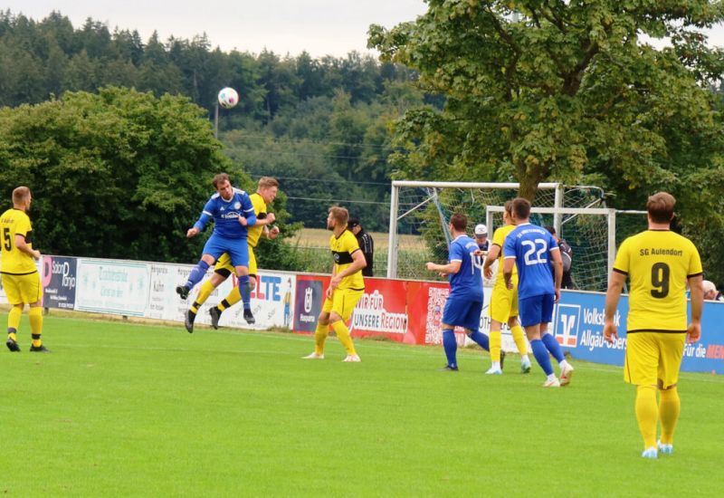 Bad Wurzach – Bei hochsommerlichen Temperaturen erwischte die SG Aulendorf einen guten Start in die Begegnung und ging bereits nach 4 Minuten durch einen Lupfer von Lukas Steinhauser mit 1:0 in Führung.