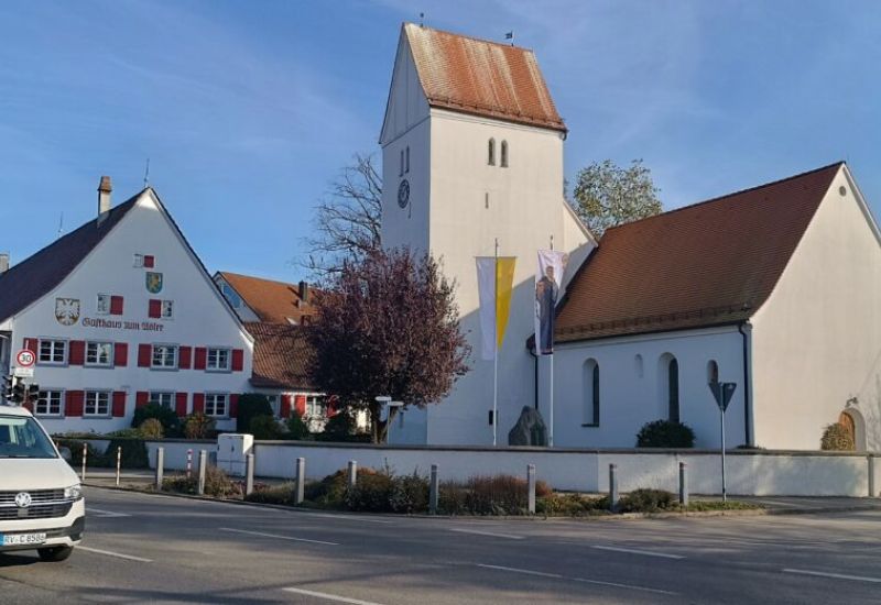 Haisterkirch – Das heute Nacht orange angestrahlte Bad Waldseer Rathaus hat uns daran erinnert, dass vor kurzem die Pfarrkirchen in Haisterkirch und Bad Waldsee rot angestrahlt waren. Warum, das weiß Rudi Martin.