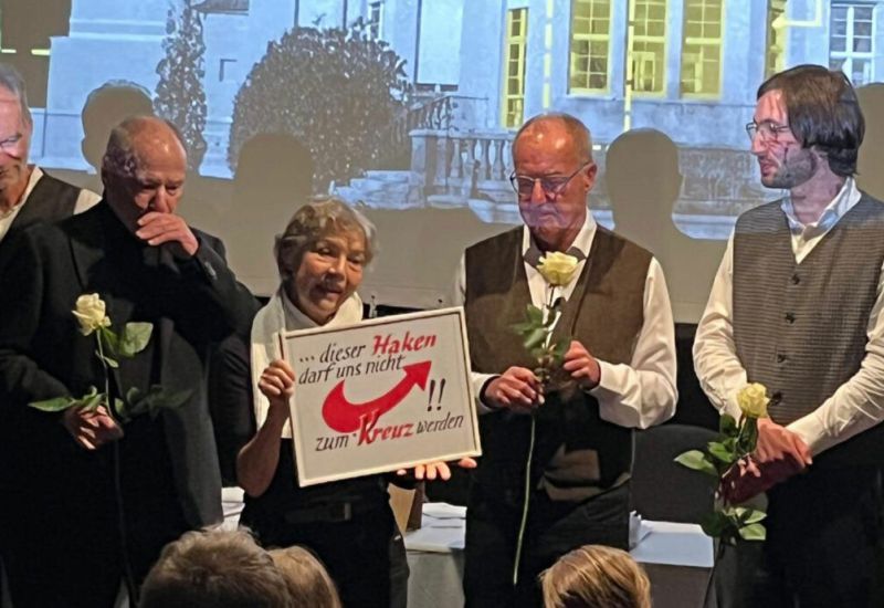 Bad Waldsee – Das „seenema“ Stadtkino in Bad Waldsee platze aus allen Nähten, als am Donnerstagabend, 25. April, das Spielerteam Katharina El Masri, Klaus Schulz, Moritz Herz, Hans Ehinger, Karl Birkle und Veronika Degler in der szenischen Lesung „Geheimplan gegen Deutschland“ ein Treffen Rechtsradikaler in einem Potsdamer Hotel vom vergangenen November nachstellte, von dem niemand erfahren sollte.
