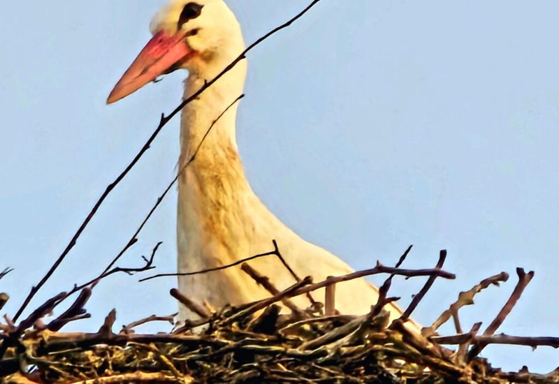 Haisterkirch – „Ich bin wieder da und habe den Frühling mitgebracht“ – dies scheint der Storch zu sagen, nachdem er seinen Platz im Storchennest in Haisterkirch wieder eingenommen hat. Gesehen am 1. März von Eva Zitzl.