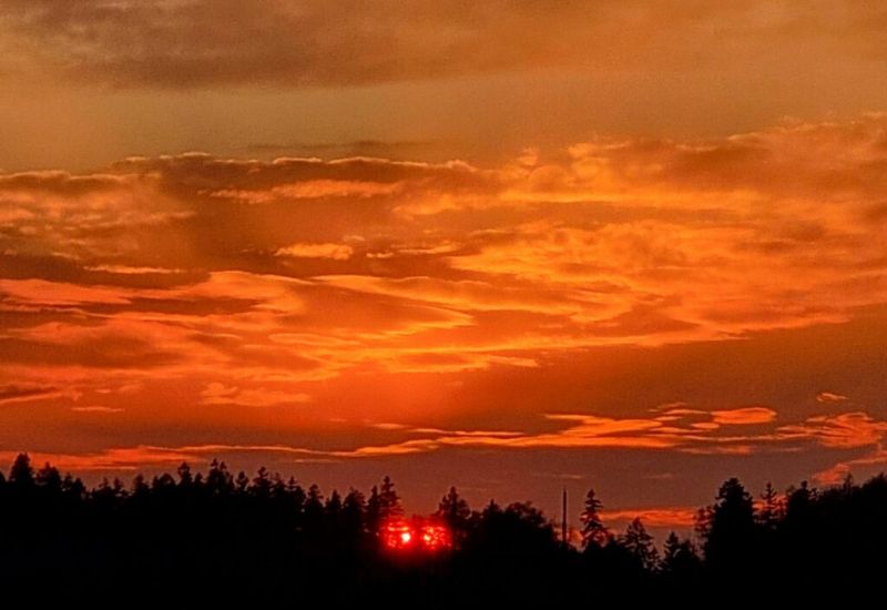 Unser Leserin Eva Zitzl hat uns dieses Foto vom Sonnenuntergang zukommen lassen. Gesehen hat sie das Flammenmeer am Himmel heute (9. Februar) um 17.20 Uhr von Haisterkirch aus Richtung Westen nach Bad Waldsee. Sie schreibt: „Man hat den Eindruck, dass der Himmel brennt.“