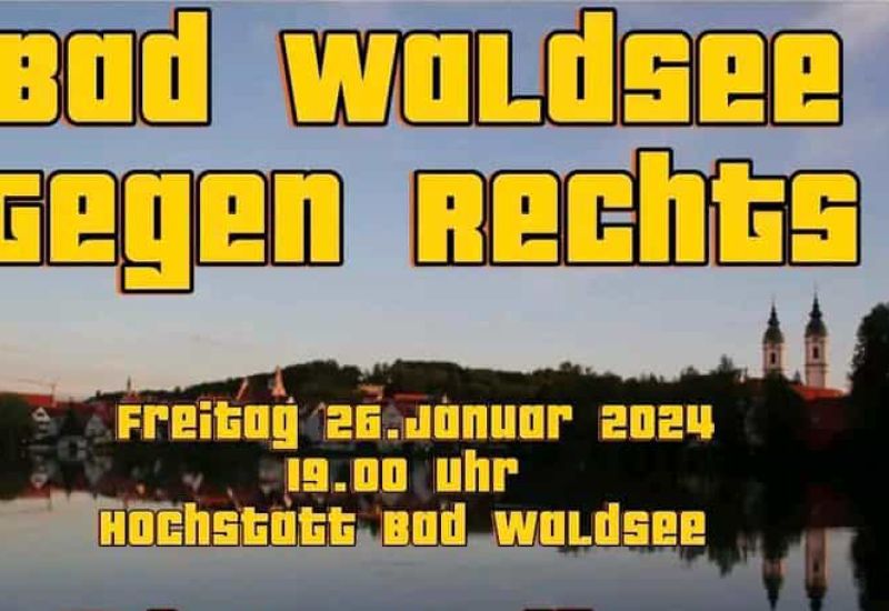 Bad Waldsee (rei) – An diesem Freitag, 26. Januar, gibt es auf der Hochstatt eine Kundgebung „Bad Waldsee gegen Rechts“. Zu dieser Veranstaltung ruft eine Gruppe zivilgesellschaftlich engagierter Personen auf. Es spricht unter anderem OB Henne. Die Veranstaltung beginnt um 19.00 Uhr.