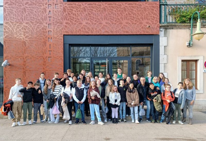 Bad Waldsee – Bienvenue à Feillens! Mit selbstgebastelten Fahnen und Banderolen wurden die deutschen Schüler und Schülerinnen der EBS in Bad Waldsee von ihren AustauschschülerInnen im Oktober bei ihrer Ankunft vor dem Collège freudig empfangen.