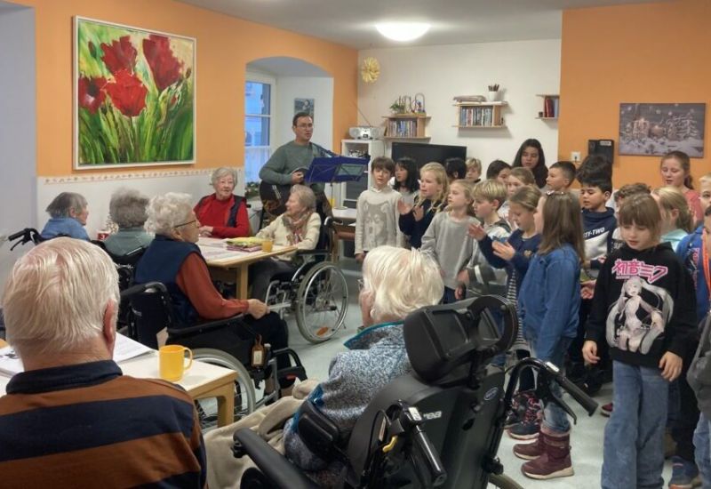Bad Waldsee – Die Klasse 3a der Döchtbühlschule besuchte zur Weihnachtszeit das Spital in Bad Waldsee. In drei verschiedenen Wohngruppen gaben die 26 Kinder mit ihrem Lehrer Stefan Betz ein buntes und auch besinnliches musikalisches Repertoire zum besten.
