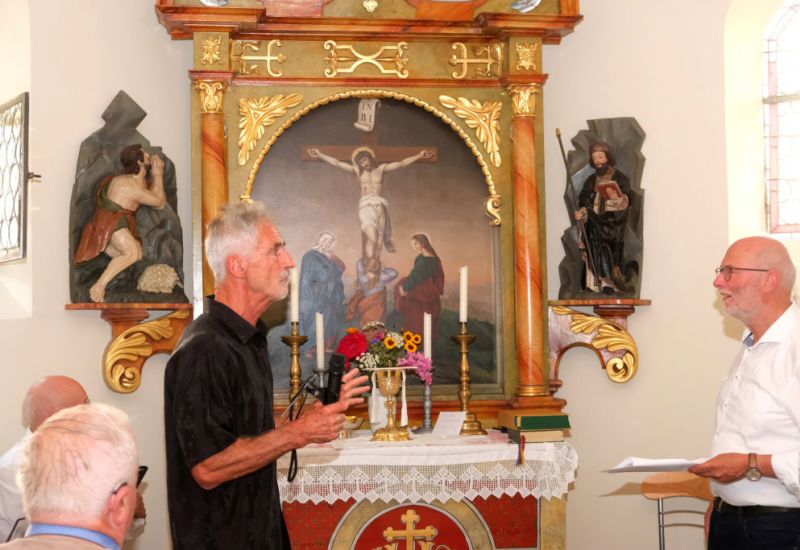 Brugg – Der Weiler Brugg feierte am 16. August, dem Tag des Heiligen Rochus, dem die Kapelle des Weilers gewidmet ist, sein 750-Jahr-Jubiläum und hatte punktgenau auf den 16. August die Kapelle innen gründlich renoviert. Gerhard Reischmann, Sprecher der Kapellengemeinschaft und des Fördervereins, konnte beim Patrozinium zahlreiche Schaffer und Spender willkommen heißen. Der zweite Festtag mit Dankandacht und Lichtbildvortrag war am 18. August; ein gesonderter Bericht darüber folgt.