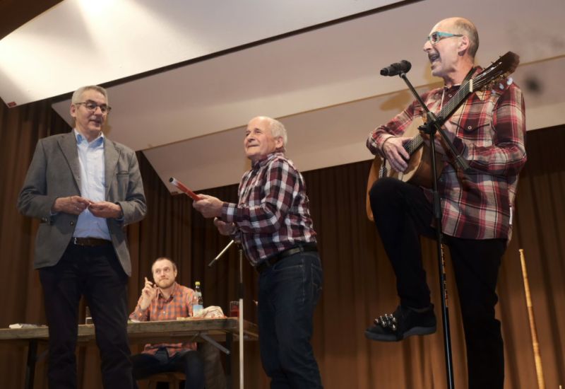 Bad Wurzach/Ziegelbach – Zum ersten Comedy-Abend nach Corona lud der VLF (Verein für Landwirtschaftliche Fachbildung) Ravensburg-Bad Waldsee in den Dorfstadel Ziegelbach ein. Mit dem schwäbischen Barden Barny Bitterwolf und dem schwäbischen Poetry-Slammer Wolfgang Heyer hatte sich der Verein zwei komödiantische Hochkaräter aus der Region geangelt, die im Doppelpack für beste Stimmung bei den rund 250 Gästen sorgten.