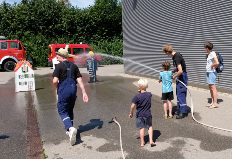 Bad Wurzach – Weil der Wetterbericht heißes Wetter vorhergesagt hatte, hielt sich der Ansturm von Kindern und ihren Eltern beim Blaulichttag im Rahmen des Kinderferienprogrammes am und im Feuerwehrhaus zunächst noch etwas in Grenzen.