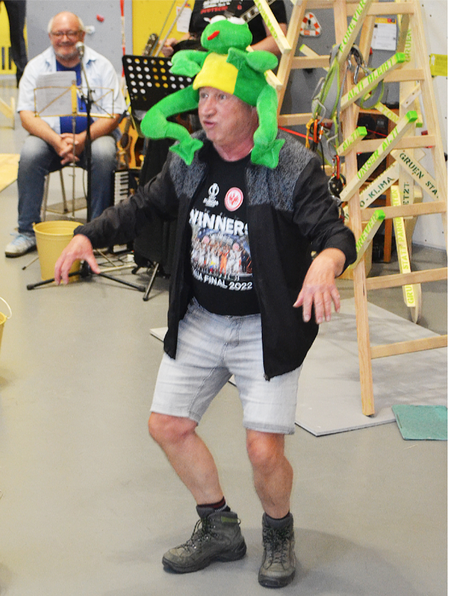 Peter Schmid kam nach einem Vortrag, wenn ich es richtig in Erinnerung habe ein VHS-Vortrag in Biberach im Oktober vergangenen Jahres, auf mich zu und meinte, dies sei ein wirklich brisantes Thema, das er gerne im Theaterspiel umsetzen würde. Ich dachte anfangs, er wolle von mir ‚nur‘ inhaltliche Unterstützung. Dass ich selber eine Rolle übernehmen würde, war für mich kein Thema. Aber dann stand ich halt unverhofft auf der Bühne. Peter wusste, wie er da vorzugehen hatte. Er ist schließlich Psychotherapeut. Ich habe es jedoch nicht bereut, fühlte mich bei den Profis von ‚Theater ohne Namen‘ als ergrauter Klimamahner wohl. Wobei, Willi Fritz, eine tragende Säule des Theaters, glaube ich, ist sogar noch etwas älter als ich. Und mit der Power der Baumbesetzer um Samuel Bosch, den beiden exzellenten Musikern Albe Bücheler und Peter Zoufal war es eine wirklich großartige Erfahrung, die ich nicht missen möchte. Und was den Kiesabbau anbelangt, habe ich ohnehin eine dezidierte Meinung. Kies, wie alle Bodenschätze, sind Gemeingut. Es gehört uns allen und keineswegs einzelnen Kiesbaronen.