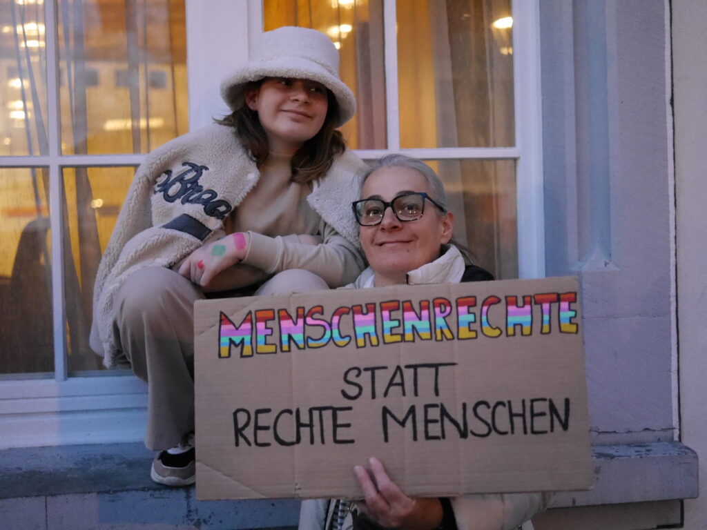 Während der Kundgebung bestand die Möglichkeit, sich am Stand von Oberschwaben ist BUNT für die digitale Menschenkette – „für Toleranz und gegen Rechts“ fotografieren zu lassen.