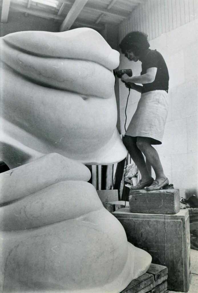 Menschlichen Körpern in existentieller Bedrohnung, zerbrechlich, fragil, bedroht, begegnet Alina Szapocznikow sehr früh. Sie wird 1926 in dem kleinen Ort Kalisz in eine polnisch-jüdische Arztfamilie geboren. Mit 14 Jahren erlebt sie die Enge, den Hunger, das Ghetto von Lodz. Dann wird sie nach Auschwitz, von dort nach Bergen-Belsen und nach Theresienstadt transportiert, überlebt die Körpersprache des männlichen autoritären Charakters, in seiner geradezu lustvollen Sucht nach Zerstörung. Mit 18 Jahren wird prägend die Befreiung von Theresienstadt durch sowjetische Truppen. Sie studiert in Prag und Paris Bildhauerei, kehrt 1951 für über zehn Jahre nach Polen zurück. Nach der Hölle deutscher KZs hat sie die Hoffnung, dass in ihrer Heimat eine bessere Welt entstehe. In der Kunst allerdings beginnt sie nicht, die hat der Kommunismus gekapert. Sozialistischer Realismus heißt die neue Doktrin. Dennoch schafft sie zwei großartige Entwürfe, die auch in Ravensburg zu sehen sind: eine metallene Hand mit einem Loch, einer Wunde in der Mitte. Wie ein Schrei, wie ein Befreiungsakt wirkt dieser Entwurf für ein nicht realisiertes „Mahnmal für die Helden von Warschau“; zwei Hände für ein ebenfalls nicht realisiertes Mahnmal für Auschwitz-Birkenau. Sie gestaltet 1956 die Bronzeskulptur einer jungen Frau mit winzigen Brüsten, einem Pferdeschwanz, eine Hand in die Hüfte gestützt – provokativ modern, mit der Tradition der sowjetischen Heldenmütter brechend.