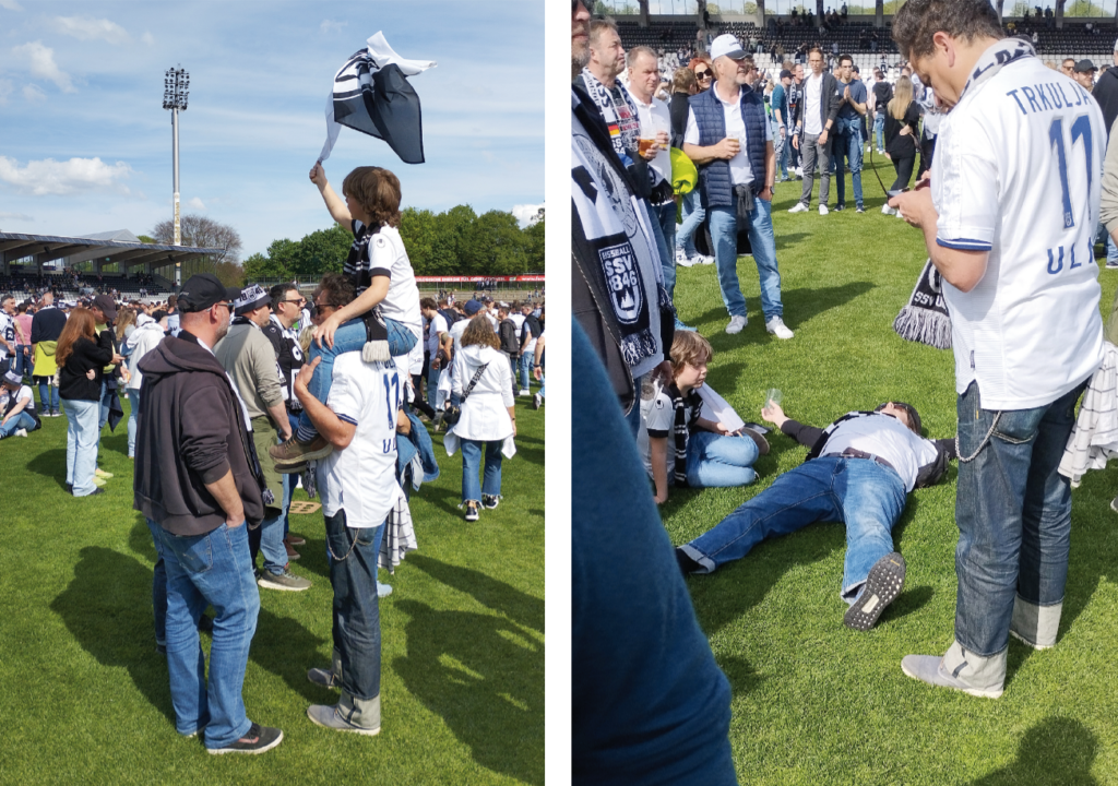 Der Weg des SSV Ulm zurück in den Profifußball war lang und beschwerlich. Nach Jahren in der Oberliga stabilisierte sich der Club ab der Saison 2016/2017 langsam wieder in der Regionalliga. Im Juli 2021 übernahm schließlich Thomas Wörle das Ruder als Cheftrainer des SSV. Der heute 42-Jährige trainierte zuvor erfolgreich das Frauenteam des FC Bayern München – mit den Damen wurde er zweifacher deutscher Meister. Die Spatzen waren für den gebürtigen Krumbacher die erste Station im Herren- fußball, mit dem Traditionsclub gelang ihm der Aufstieg in die dritte Liga, damals noch mit bescheidenem Anspruch: Die Klasse halten! 36 Spieltage später standen die Ulmer an der Spitze der Tabelle und machten am 4. Mai den Aufstieg perfekt. Der Gegner an diesem Tag hieß Viktoria Köln, eine Mannschaft aus dem grauen Mittelfeld der dritten Liga. Eine kleine Delegation von einigen Dutzend Fans war aus der Rhein-Metropole angereist und machte es sich im spärlich besetzten Gästeblock bequem, während der Rest des mit 17.000 Plätzen ausverkauften Donaustadions aus allen Nähten platzte. Bei sonnigen Temperaturen und unter strahlend blauem Himmel erlebten die euphorisierten Fans eine dominante Vorstellung ihres Clubs. Nach einer ereignisreichen aber torlosen ersten Hälfte ließ der Brasilianer Léo Scienza die Fans dann nicht länger warten und verwandelte in der 59. Minute souverän einen Elfmeter. Fünf Minuten später machte der 22-Jährige, in Wolfsburg ausgebildete Mittelfeldspieler Max Brandt dann den Sack endgültig zu. Ab hier gab es für die jubelnde Menge kein Halten mehr, mit dem Schlusspfiff stürmten sie den Platz und feierten ausgelassen mit der Mannschaft. „Nie mehr dritte Liga!“, skandierten viele. Den Ulmern wäre es zu wünschen, denn der erneute Aufstieg des schwer gebeutelten Traditionsvereins verkörpert für viele Fußballromantik pur. Ein schwäbisches Sommer-Märchen, das diesmal hoffentlich ein gutes Ende nimmt.