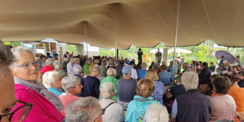 Wangen – Einen solchen Publikumsansturm hat der „Garten der Kirchen“ auf der Landesgartenschau in Wangen selten erlebt. Am Sonntagnachmittag (8. September) versammelten sich fast 300 Personen zum Vortrag „Wundersames Allgäu – Glaube und Frömmigkeit am Beispiel des Segenspfarrers Augustinus Hieber“.